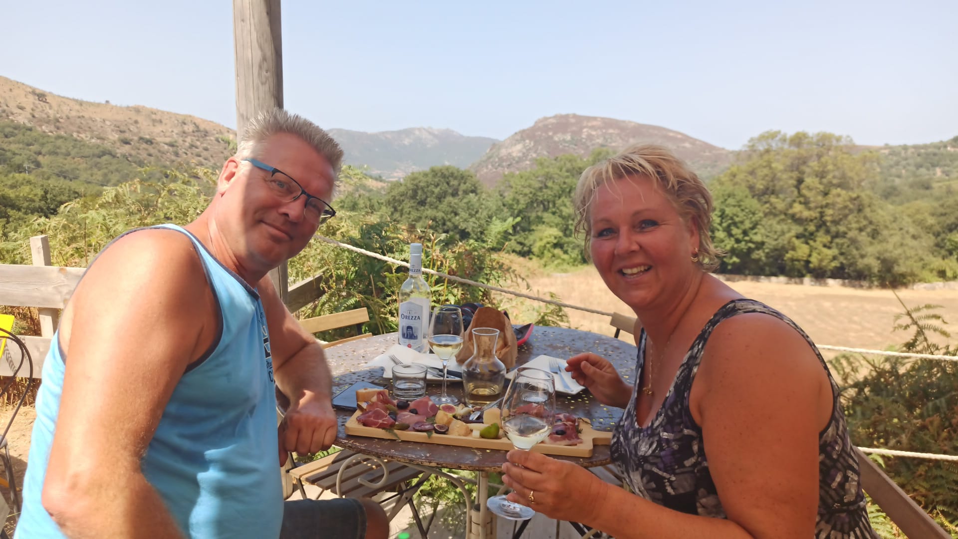 Magnifiquement situé, belle vue avec des milans royaux tournant au-dessus de la terrasse. Des gens très sympathiques. Délicieux déjeuner avec du vin blanc local, des beignets de fromage local et un plateau de charcuterie et fromage de la région. Tout en écoutant le chant corse des garçons du village, quelqu'un m'a montré où, au sommet de la montagne, on peut voir la maison du bandit. Liqueur de myrthe du commerce en guise de finale. Un déjeuner parfait.
