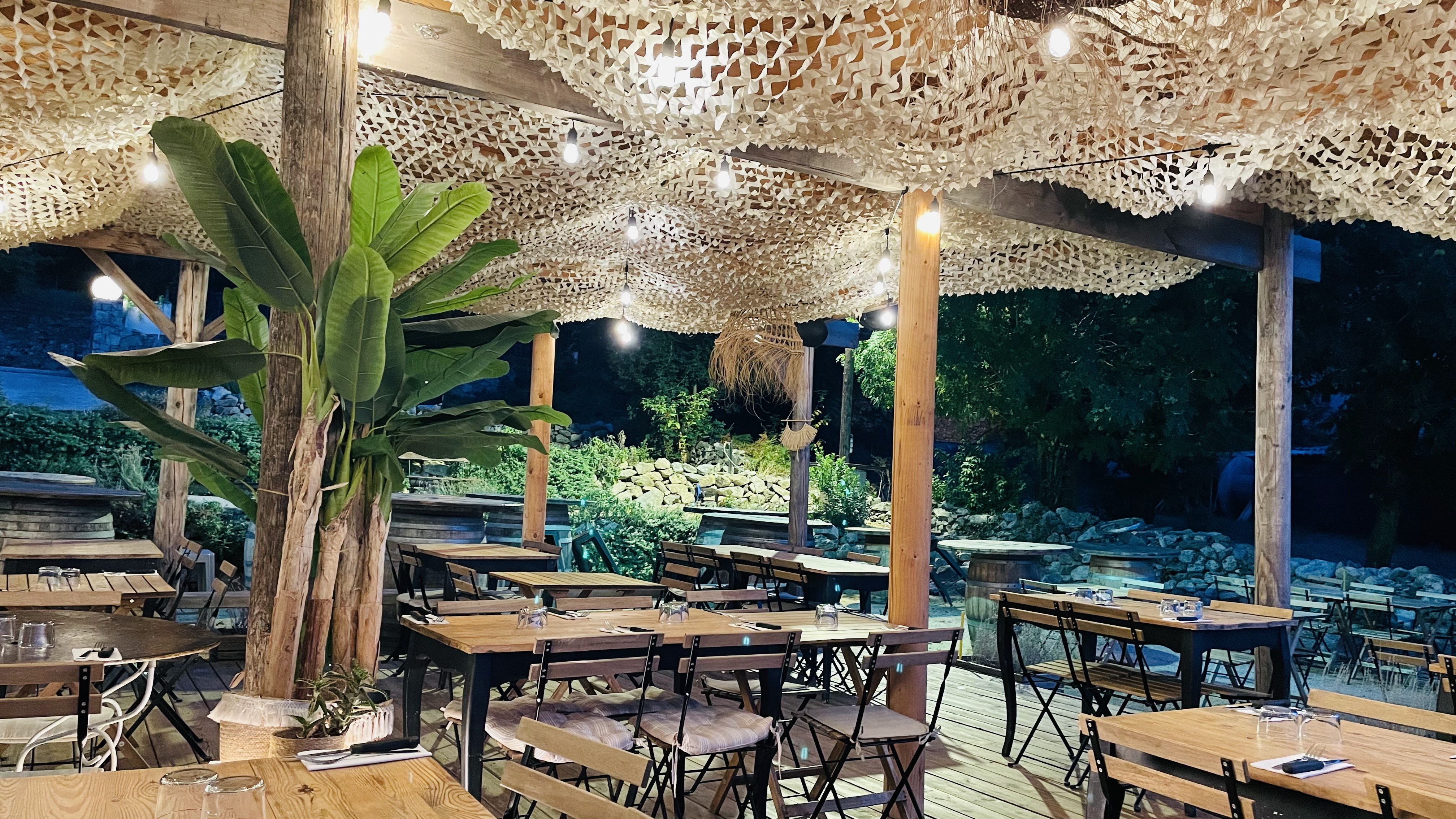 Très belle découverte, paillote au milieu de la montagne, avec une vue splendide! Nous avons déjeuné, salades copieuses et goûteuses et conquis par l’endroit et l’accueil, nous sommes revenus le soir pour de très bonnes pizzas! Pour la petite histoire, cette belle adresse est née pendant le confinement, montée de toutes pièces par deux beaux frères très sympathiques et cette réussite familiale a déjà conquis beaucoup de monde vu la fréquentation. Nous y reviendrons avec grand plaisir!