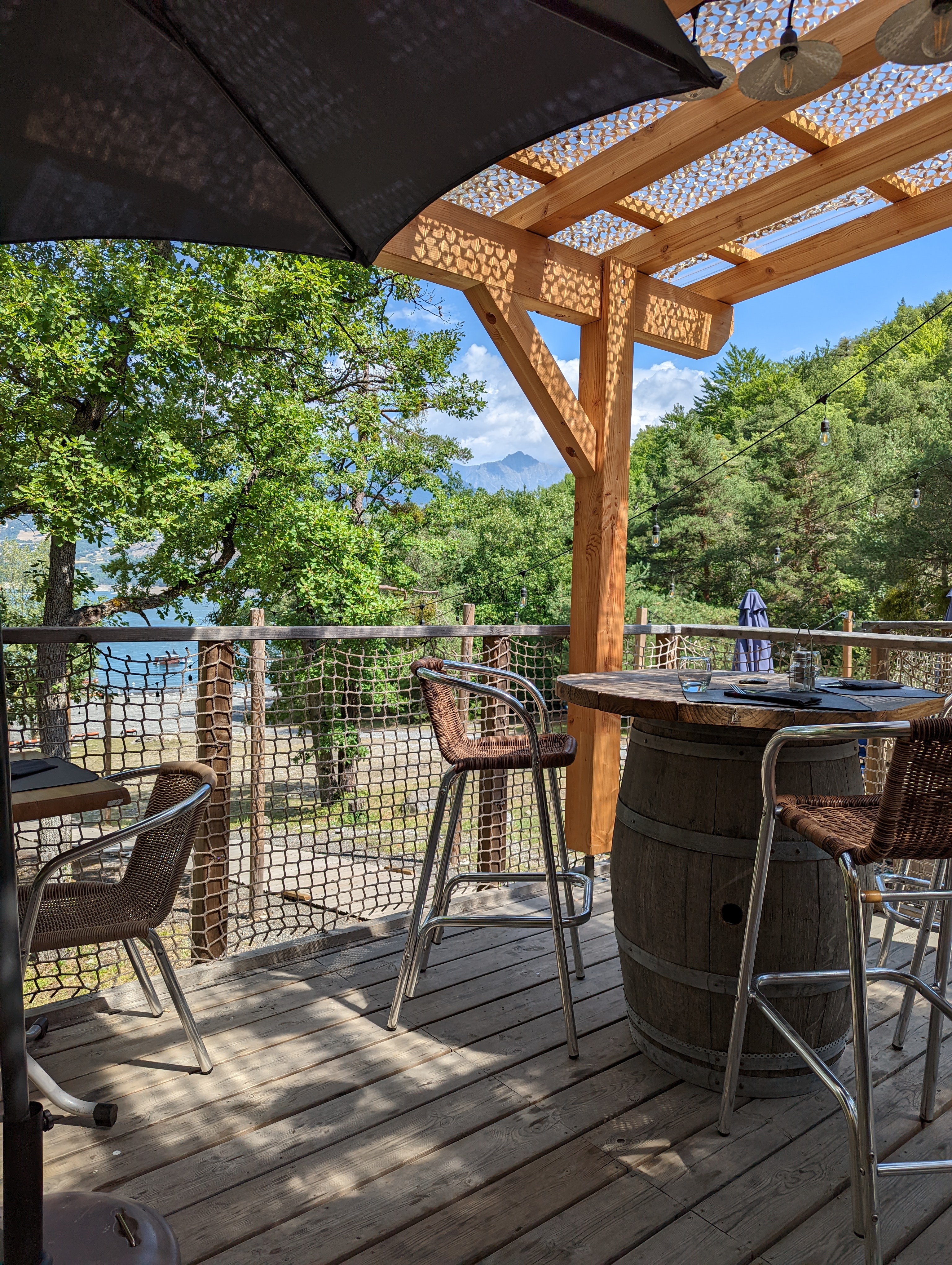 Un petit paradis au bord du lac se Serre Ponçon. Ambiance vacances garantie ! Déco soignée, plats délicieux et service au top!