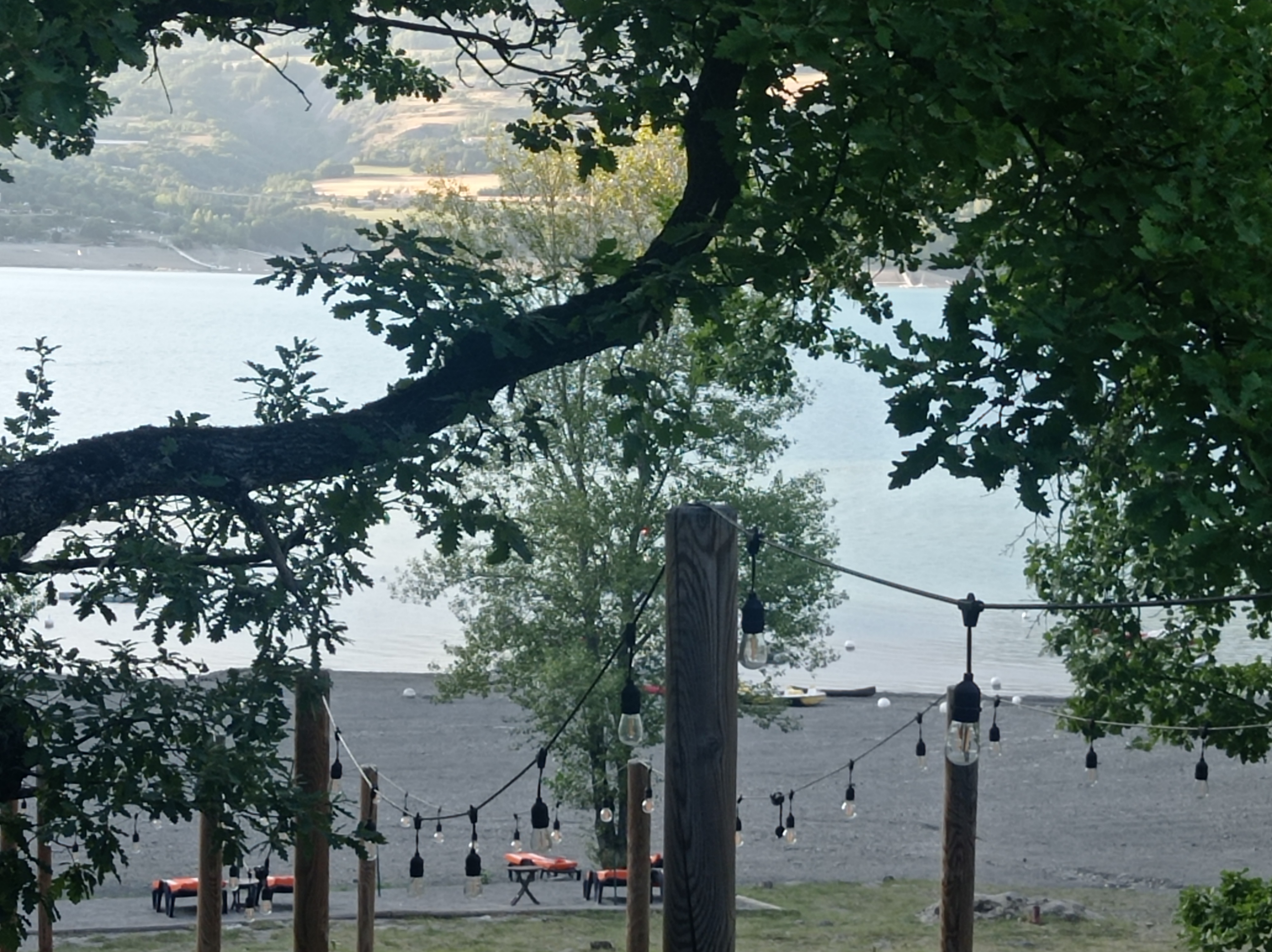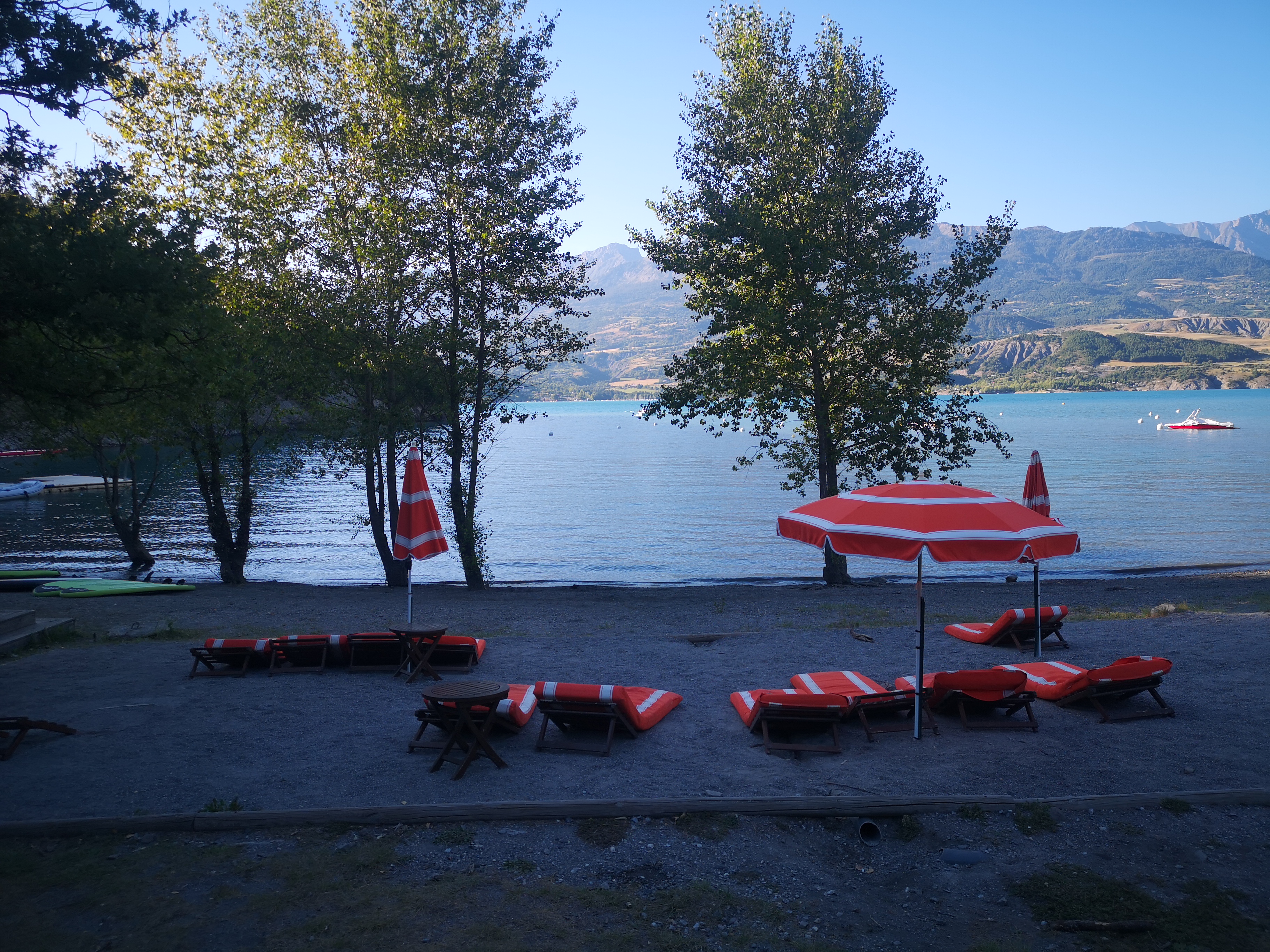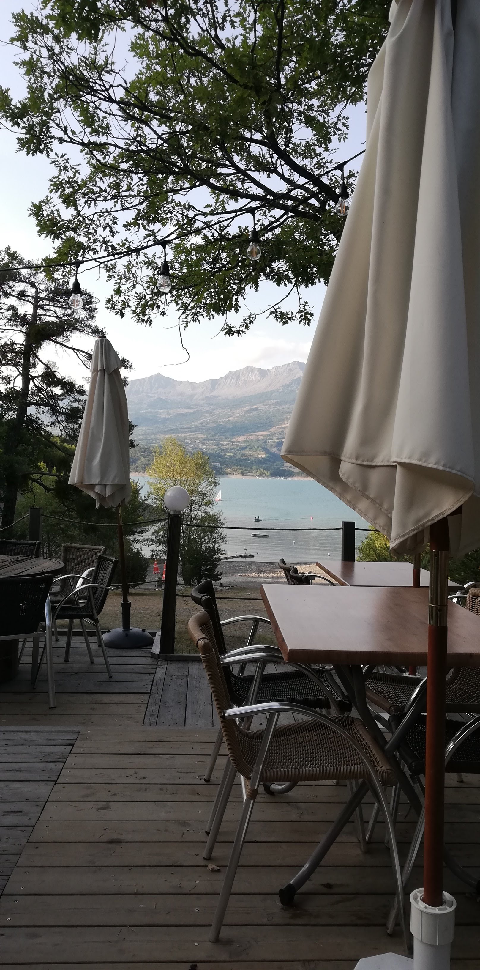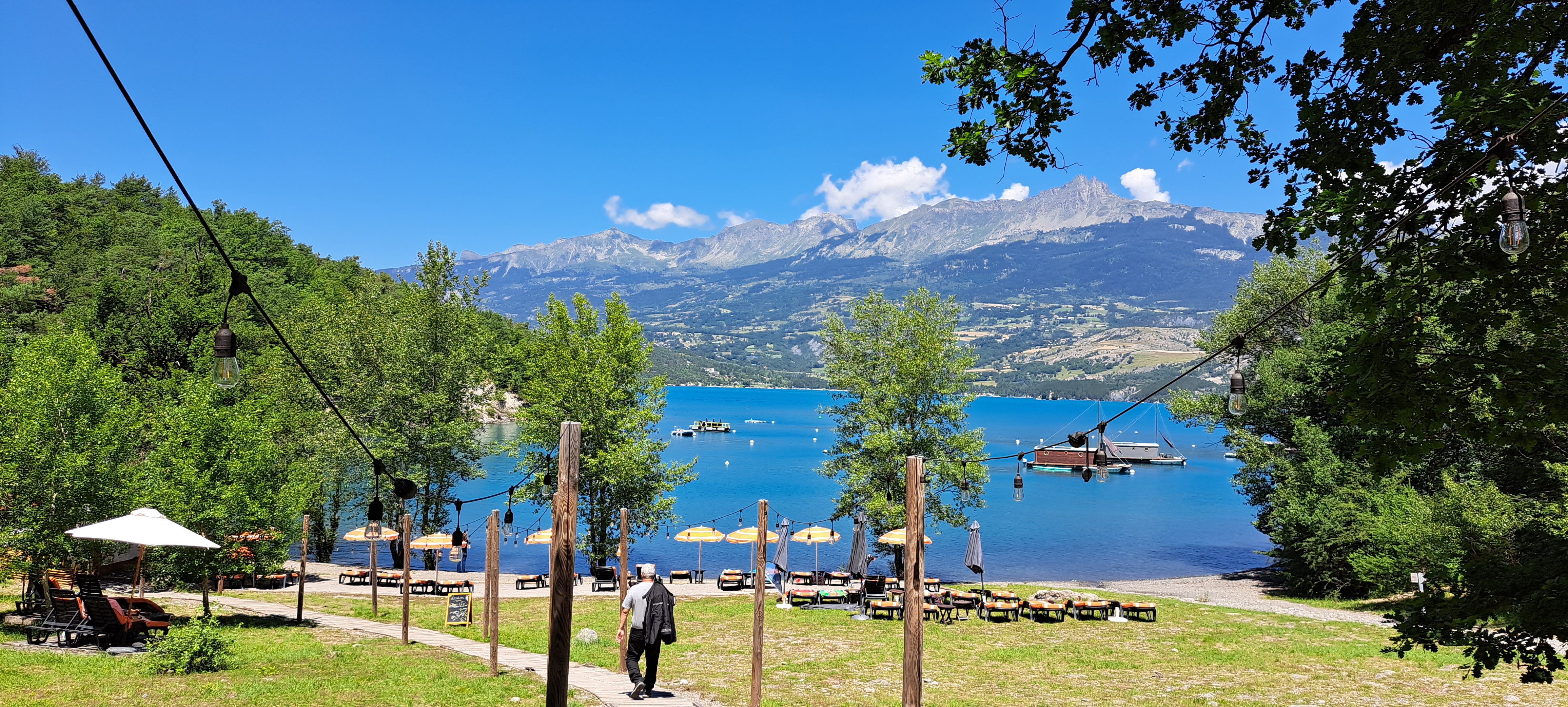 Un petit coin de merveille donnant sur le lac de Serre-Ponçon ! Petite baignade avant d'aller déguster un délicieux repas à la Paillote du Lac 😉. Avec un service impeccable et une vue sur un magnifique paysage, comment ne pas apprécier ces délicieux plats.