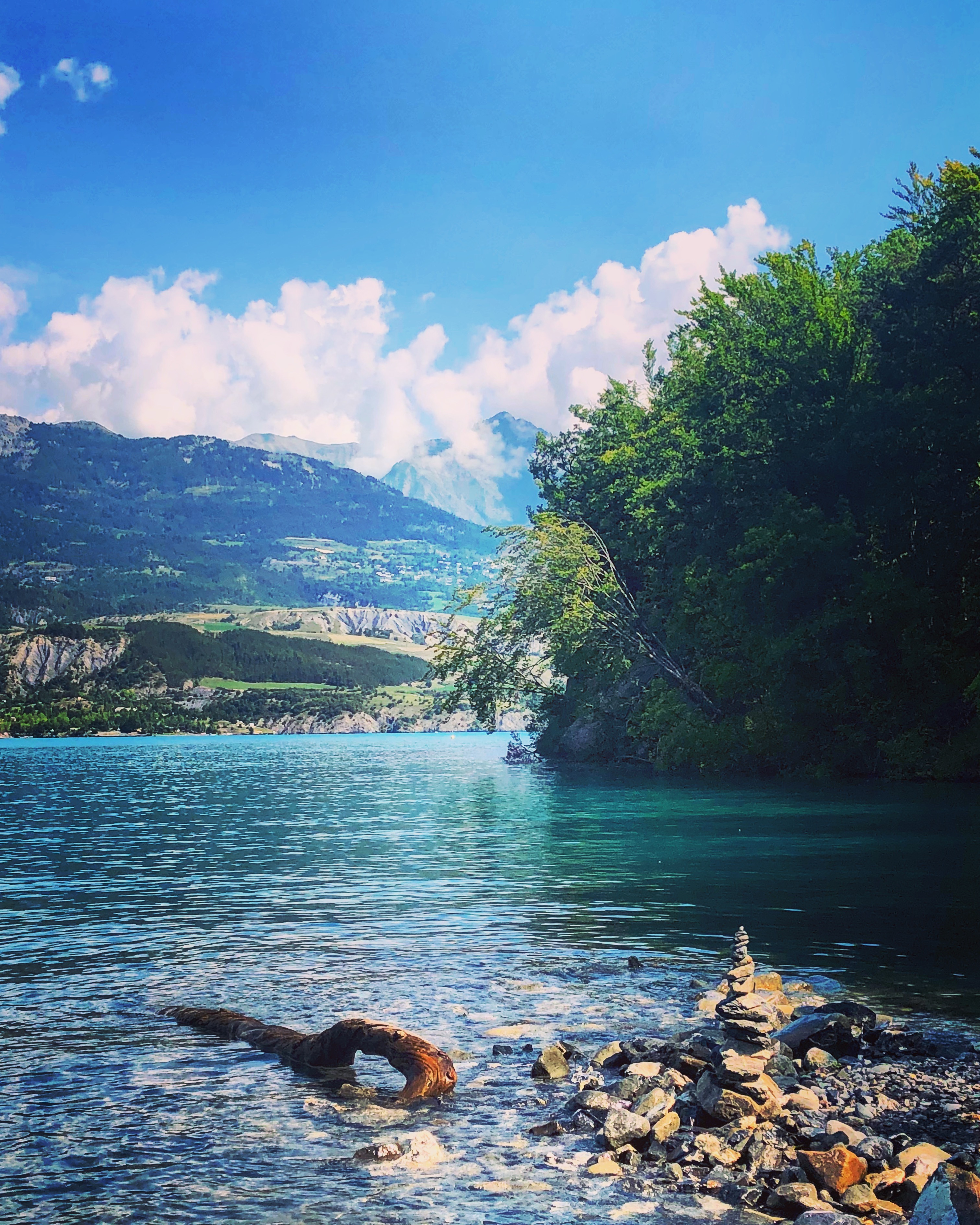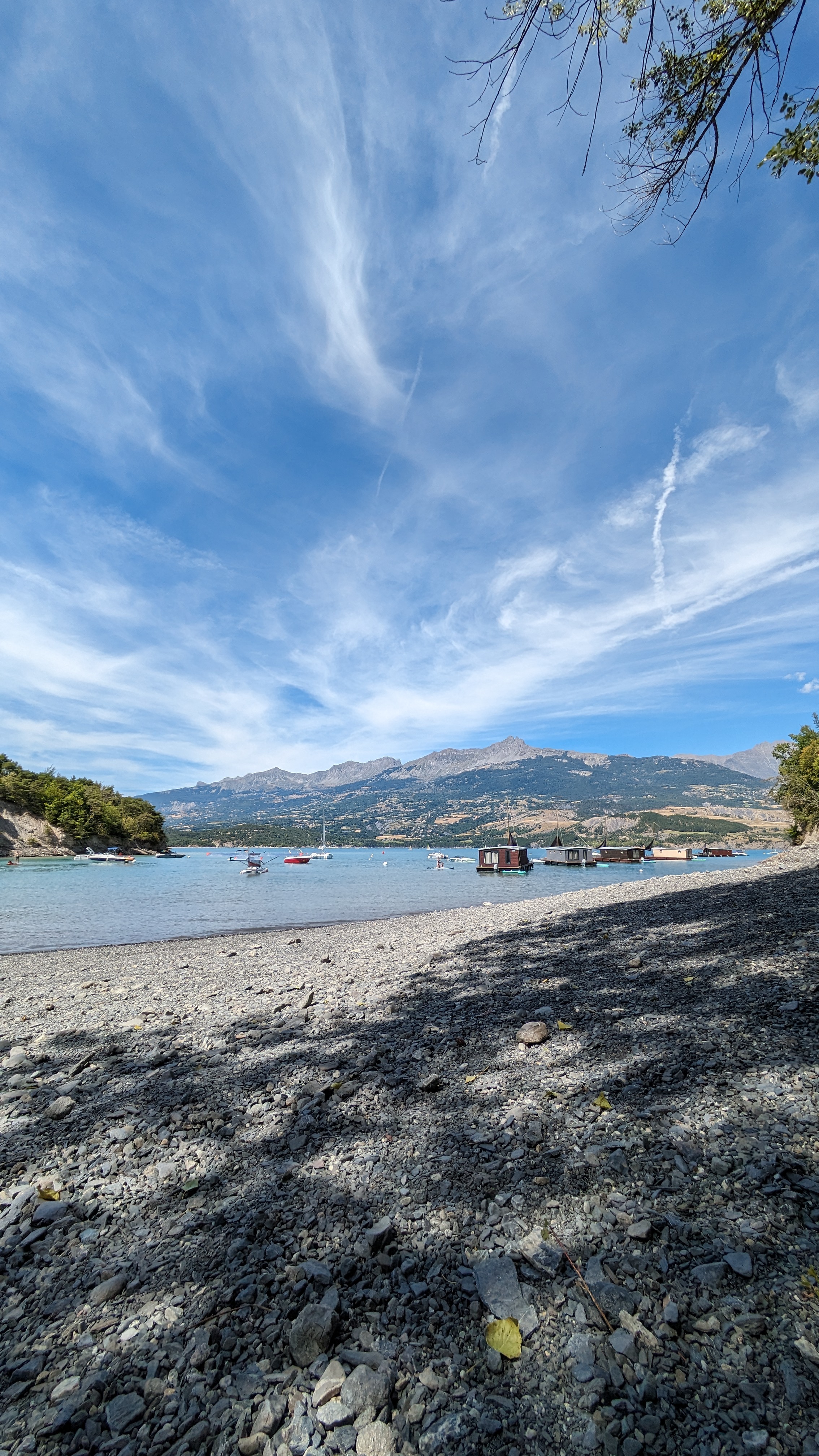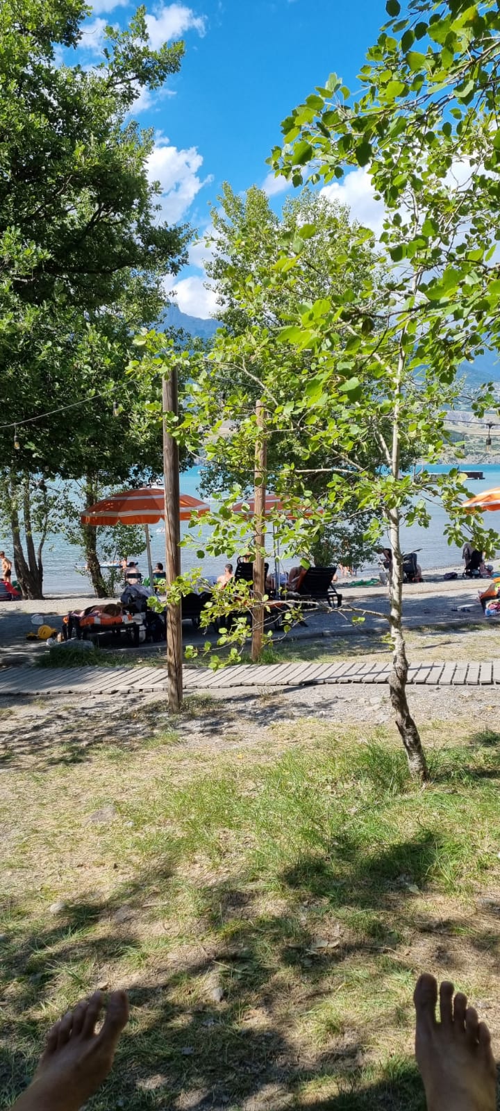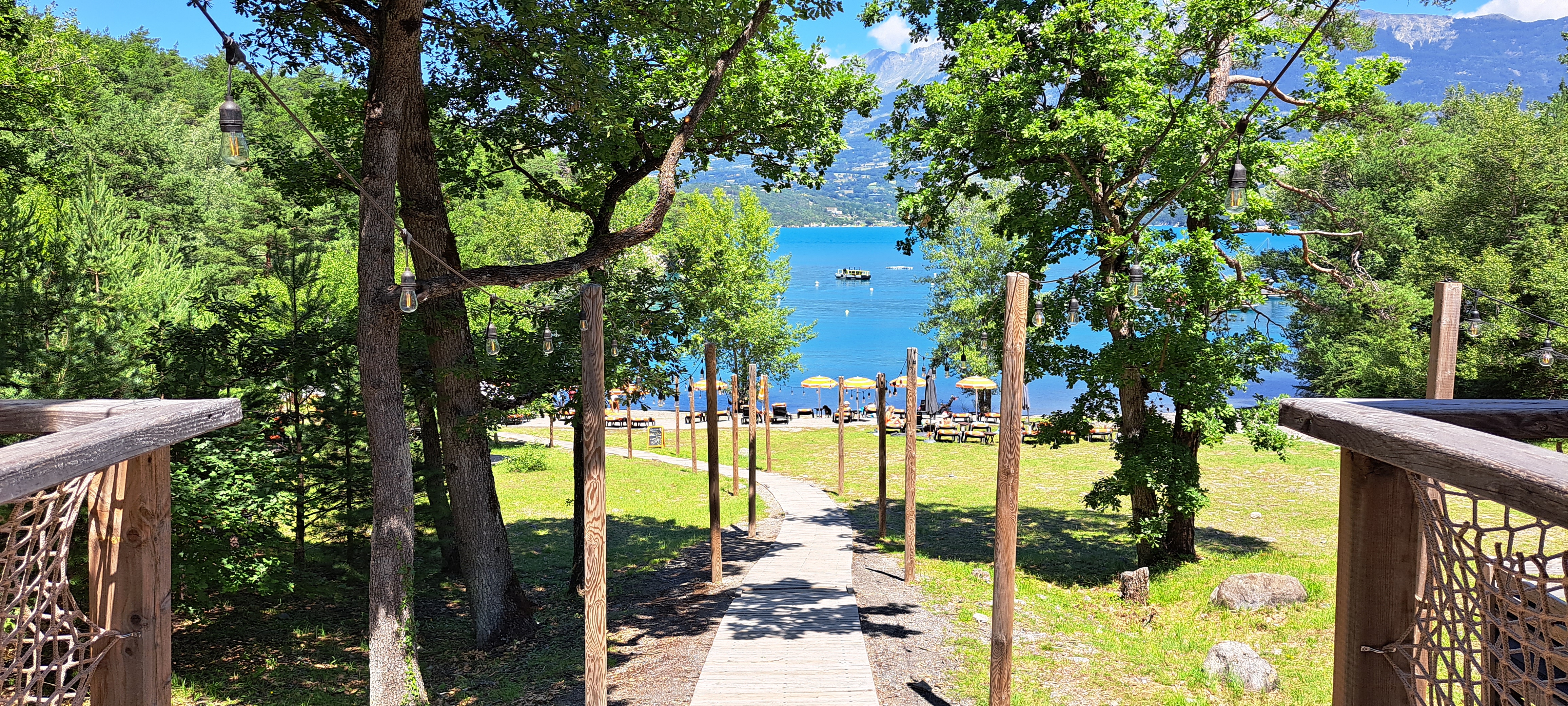 Un petit coin de merveille donnant sur le lac de Serre-Ponçon ! Petite baignade avant d'aller déguster un délicieux repas à la Paillote du Lac 😉. Avec un service impeccable et une vue sur un magnifique paysage, comment ne pas apprécier ces délicieux plats.