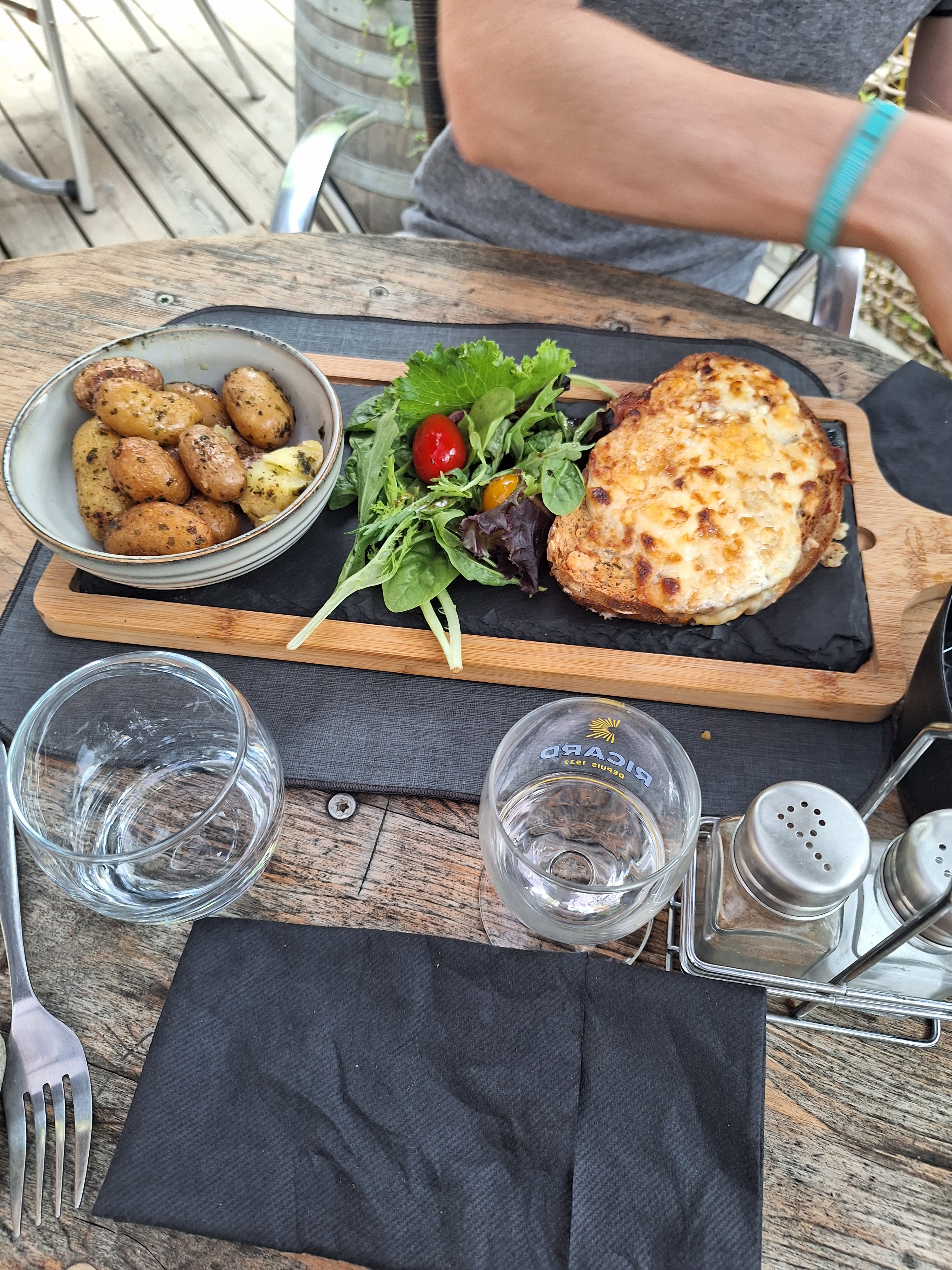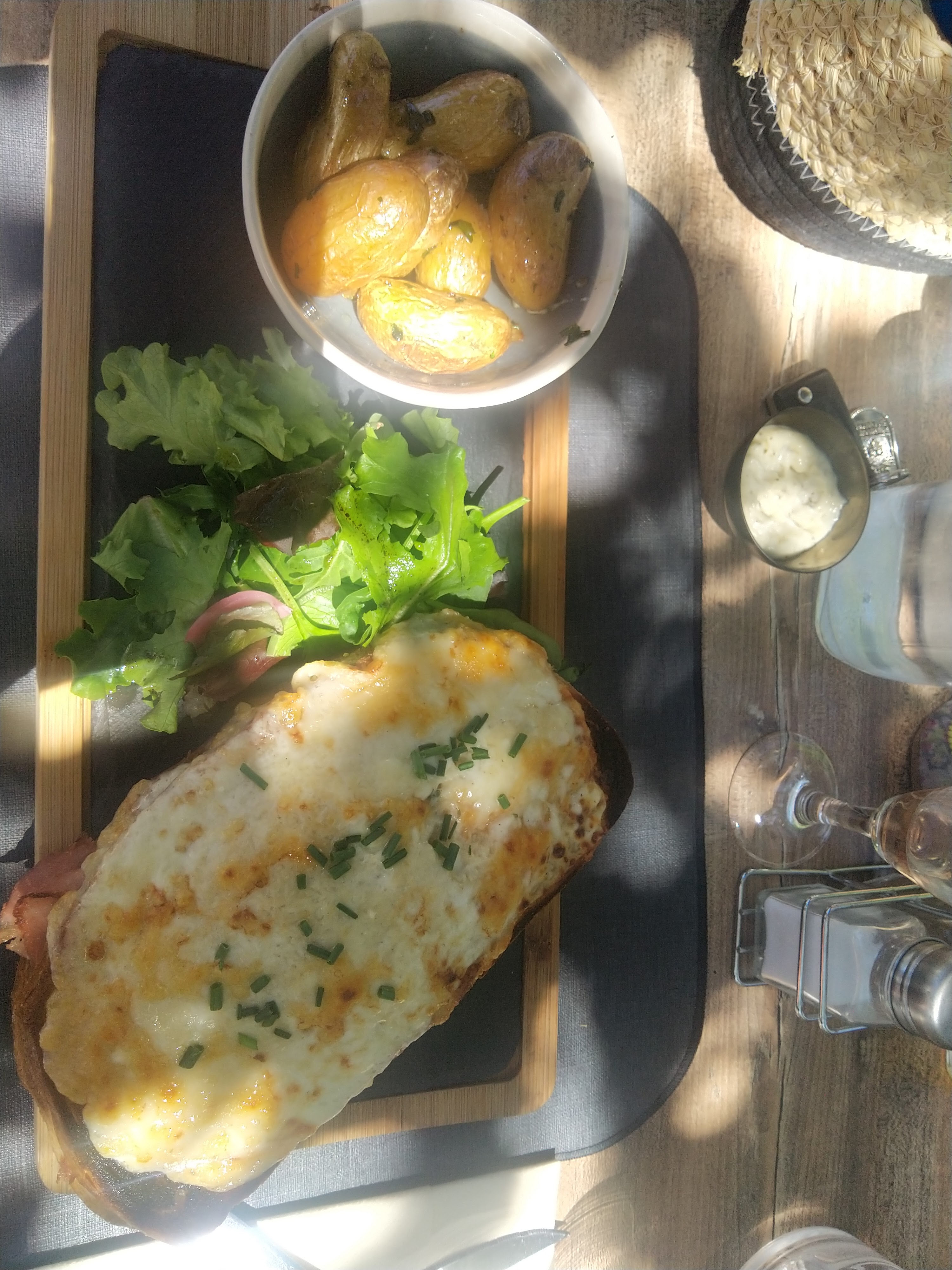 Point positif repas servi rapidement serveuse accueillante cadre très jolie par contre point négatif la nourriture très industrielle, la viande avait le goût du saumon sûrement cuite ensemble a la placha moi qui n aime pas le poisson et dessert café gourmand tres industriel le prix très excessif pour la qualité du repas. A faire escale en bateau pour profiter de l endroit qui reste à mon goût tres jolie et siroter une bonne bière 🍺 🍺 🍺