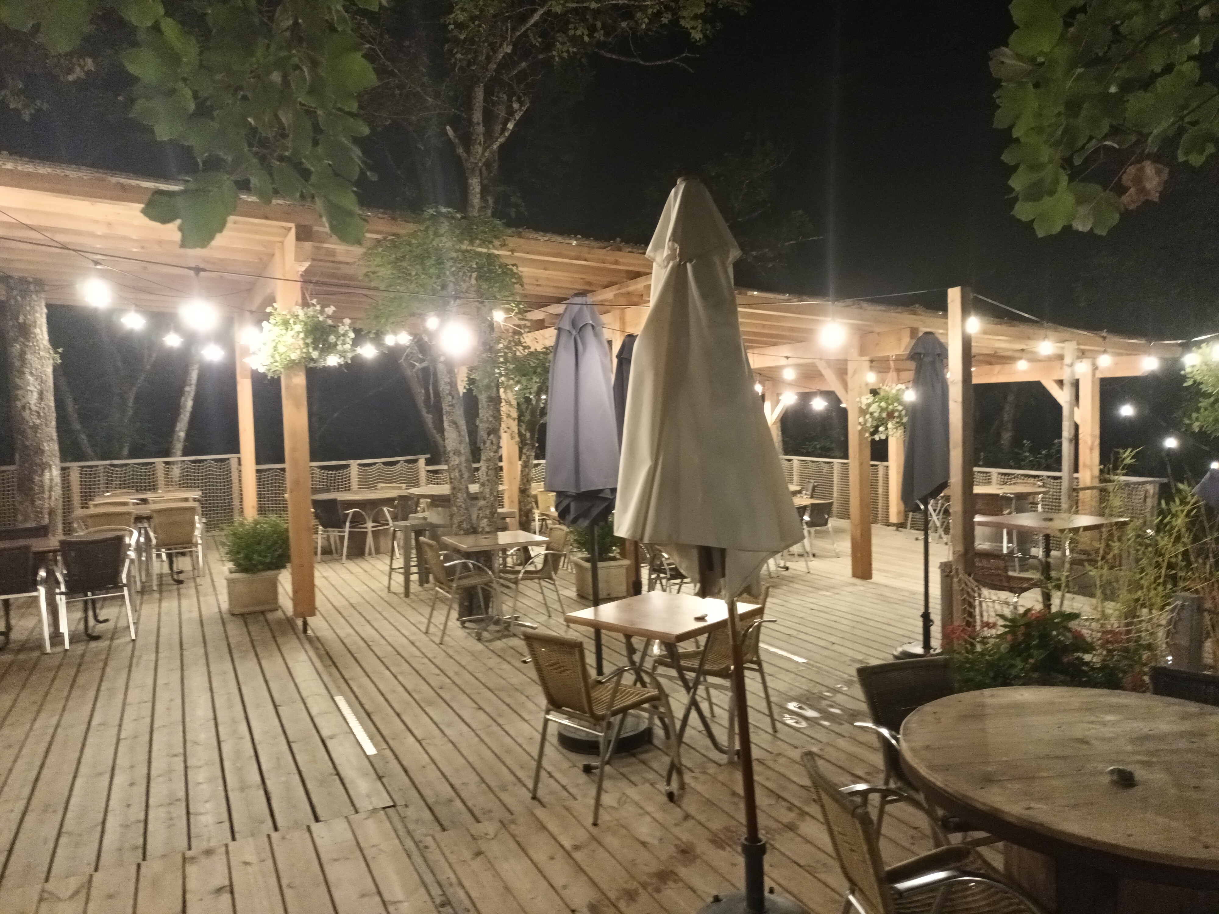Cadre sublime, verdoyant, isolé, environnement très agréable Carte peu variée de mon point de vue et trop onéreuse Fritures à partager en apéritif, servie avec une petite sauce délicate Escalopes milanaise décevante en saveur et en volume Tagliatelles et leur sauce réussies Pas de dessert pris mais ils l'ont l'air très bon Pas envie sur le moment Animations ponctuelles, nous reviendrons profiter d'une ambiance plus festive pour une soirée L'endroit doit être encore plus séduisant de nuit avec toutes les lumières Réservation conseillée Accueil et service agréables