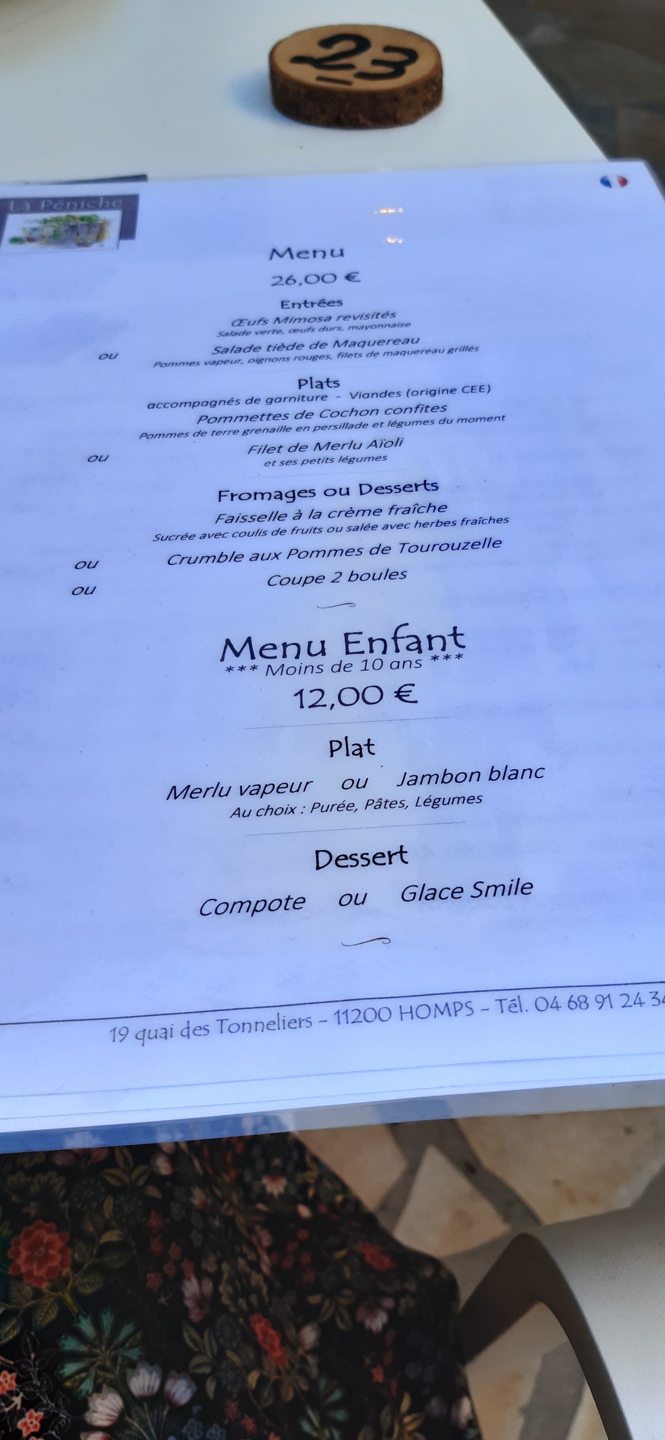 Patron et serveur (es) très sympas on s est régalé avec un menu à 17€ entrée plat dessert juste parfait après une balade au canal du midi