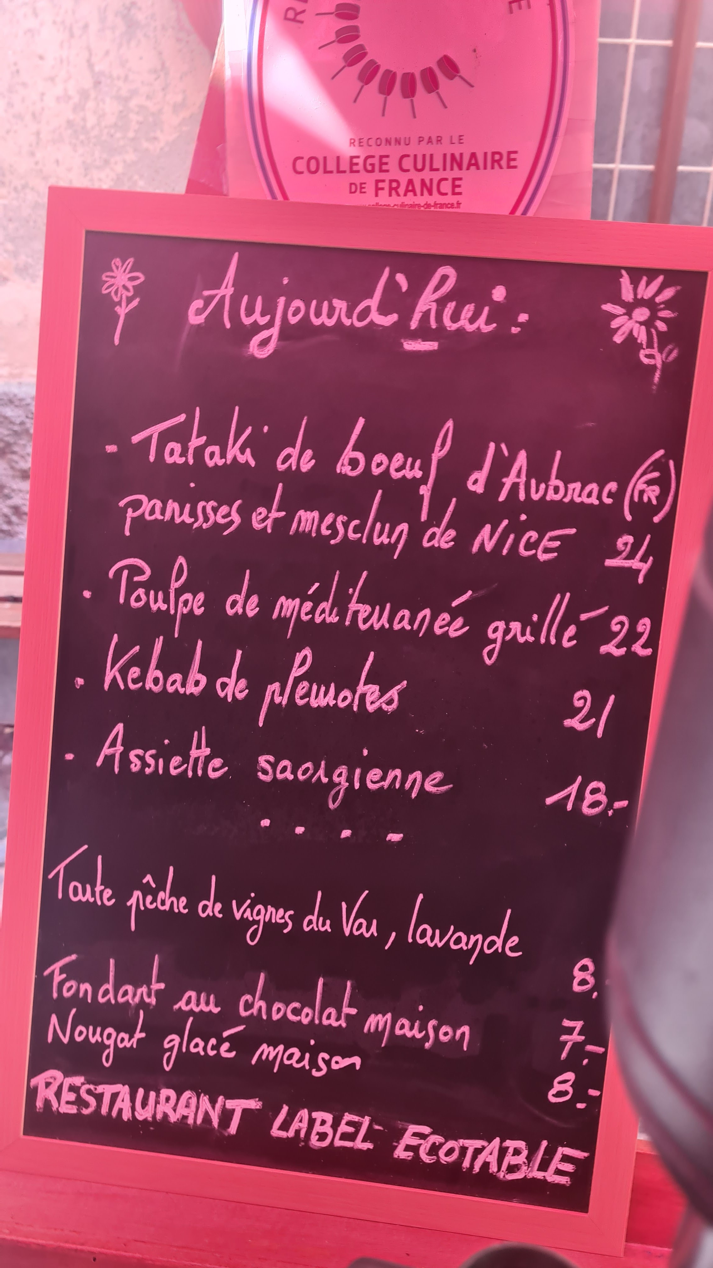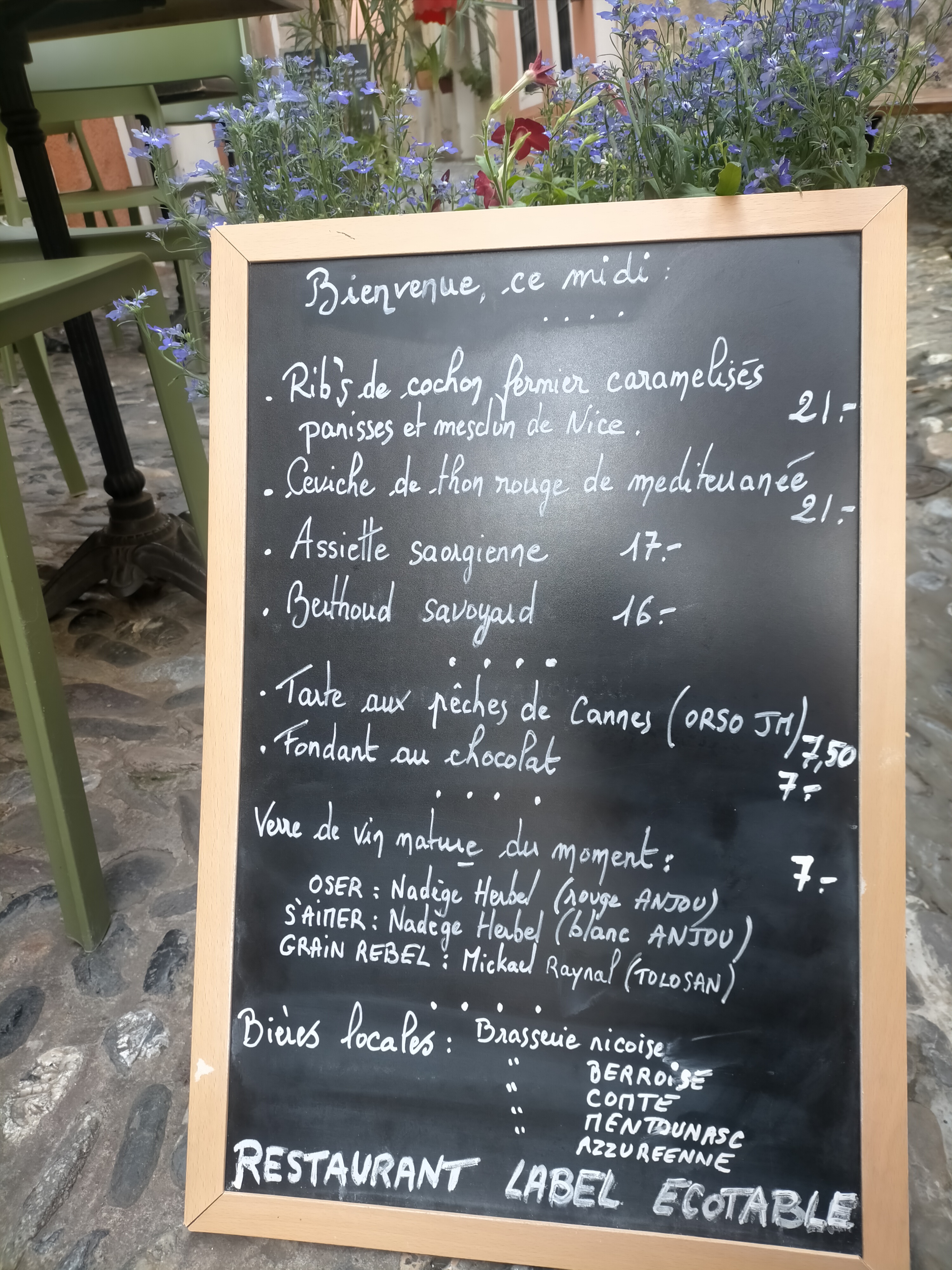 Un petit restaurant tellement étonnant qui se soucie vraiment de ses clients, la nourriture qu'ils servent est d'origine locale et biologique et l'emplacement dans une petite ruelle est si pittoresque. Ce n’est certainement pas le piège à touristes que l’on trouve dans certaines destinations touristiques. Nous vivons quelques mois par an à Nice et nous vivons lorsque nous trouvons de nouveaux endroits comme celui-ci à ajouter à notre liste d'endroits où revenir et à recommander à nos amis. Nous le recommandons vivement à tous ceux qui souhaitent vivre une véritable expérience et se soucient de la qualité et des aliments locaux. Merci!