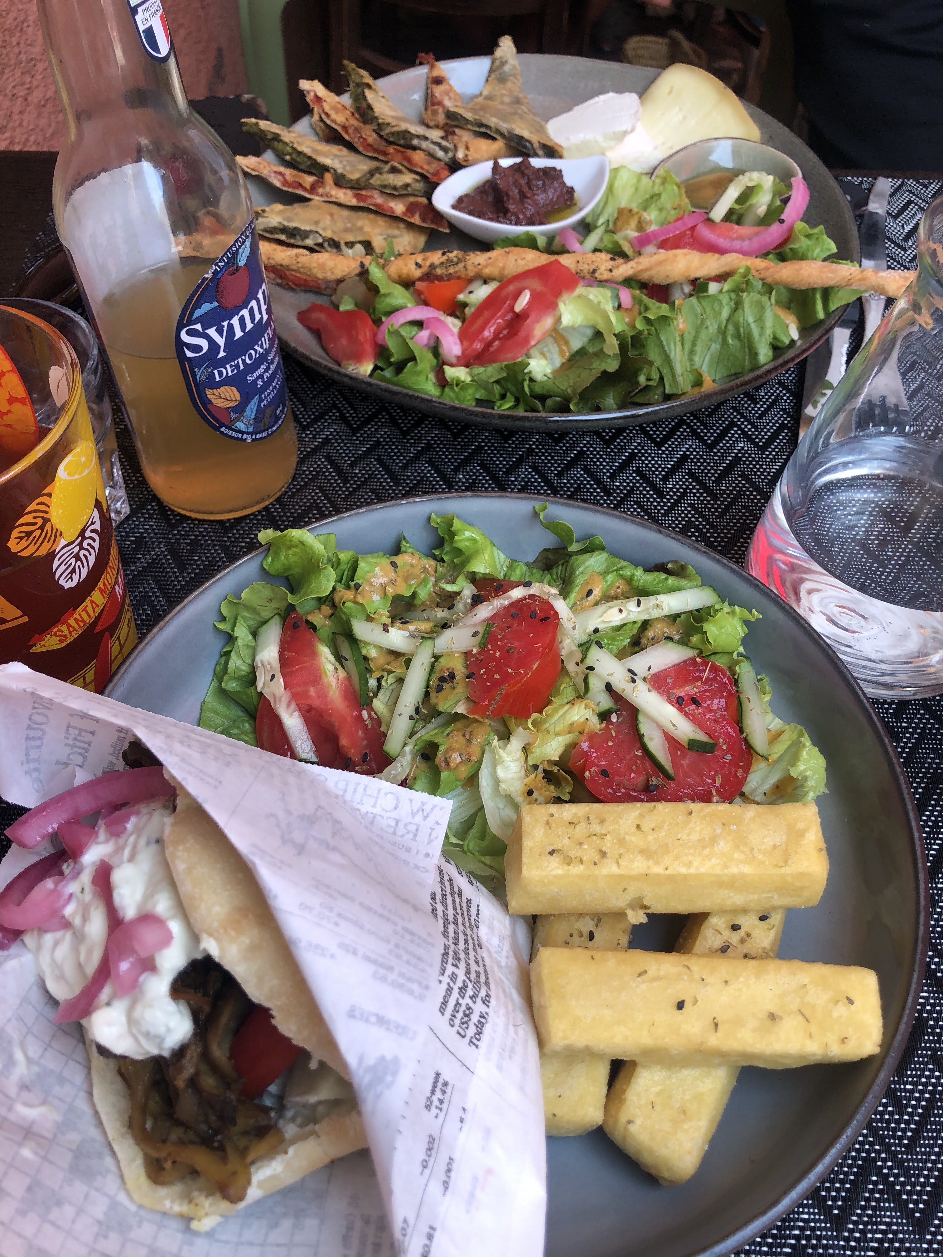 Posté le 14/08/2021 à 12:34" J'ai eu une salade avec des aubergines, des tomates, des pêches et de la feta et c'était vraiment délicieux. Des gens sympas aussi. "