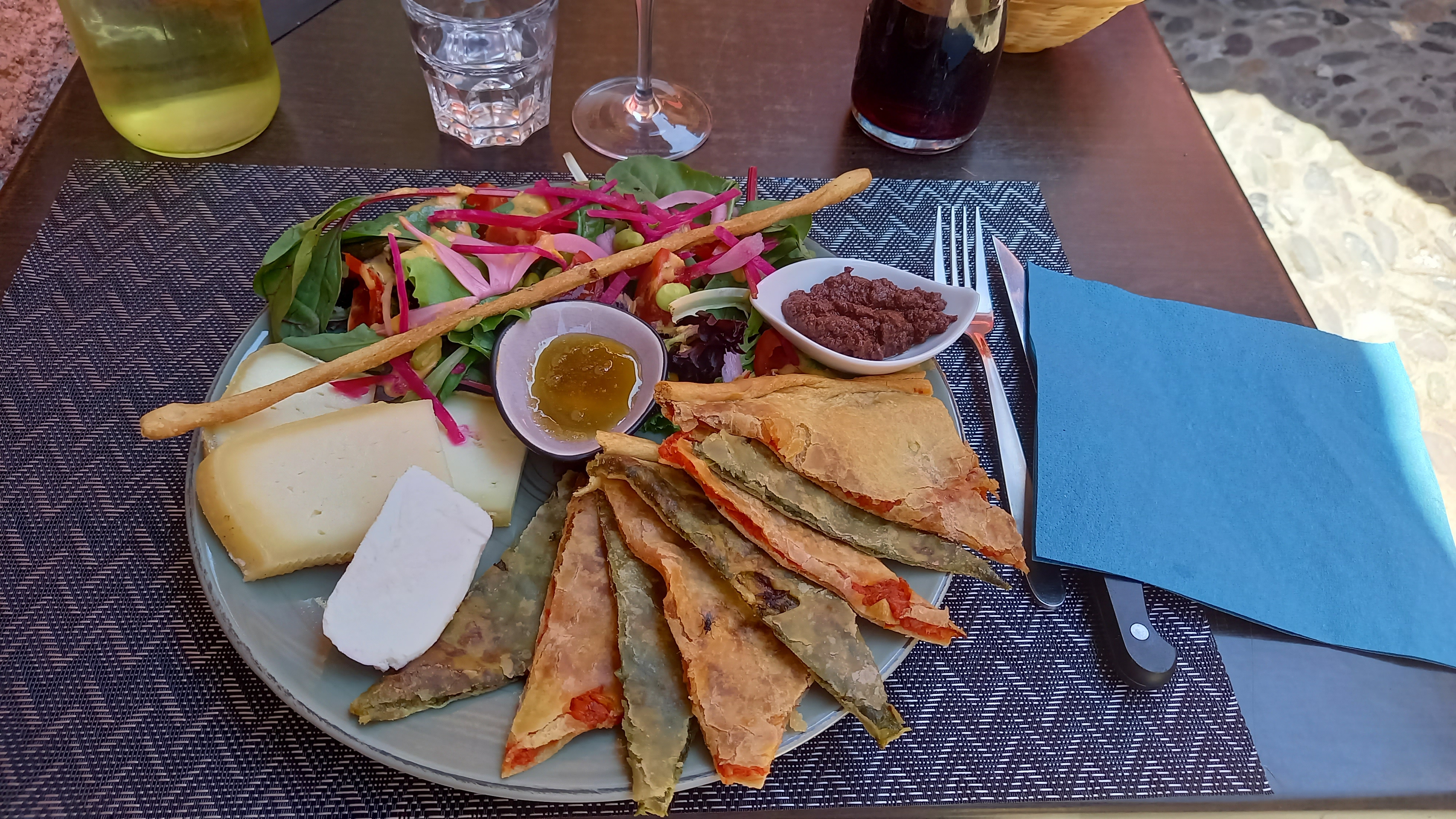 Excellente assiette Saorgienne en terrasse dans une rue pleine de charme du village. Parfait après la visite guidée du matin du monastère