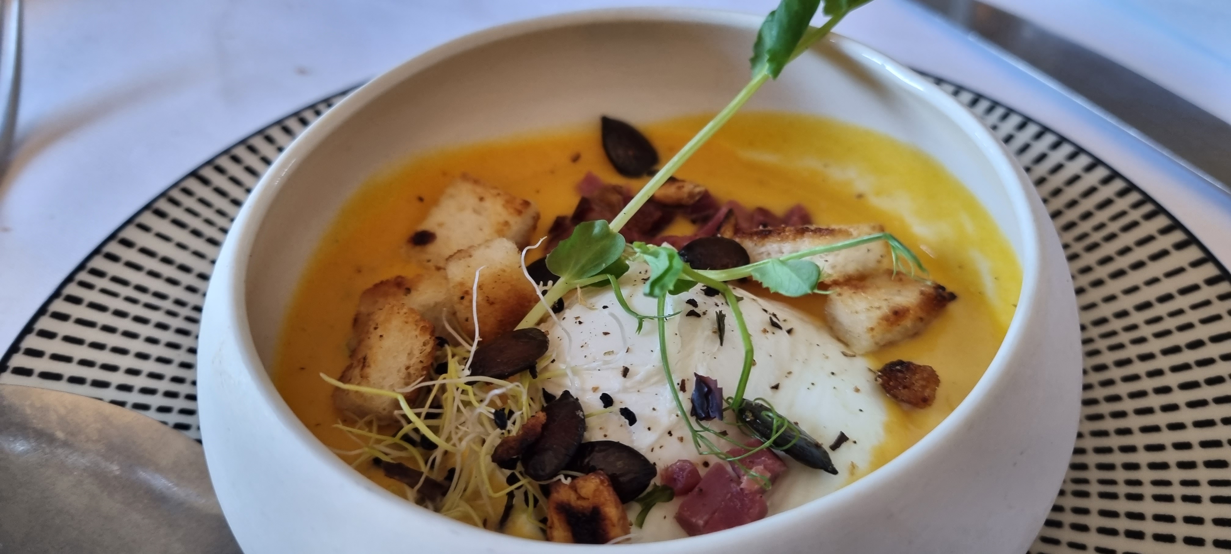 Posté le 07/08/2020 à 13:00"Superbe allez y pour ce qu'il y a dans l'assiette, pas au plafond ...🙃 Les mets et le service sont au top Je n'ai pas aimé la décoration et surtout pas le plafond qui ressemble à celui de mon bureau Allez-y pour ce que vous aurez plaisir à déguster 😛"