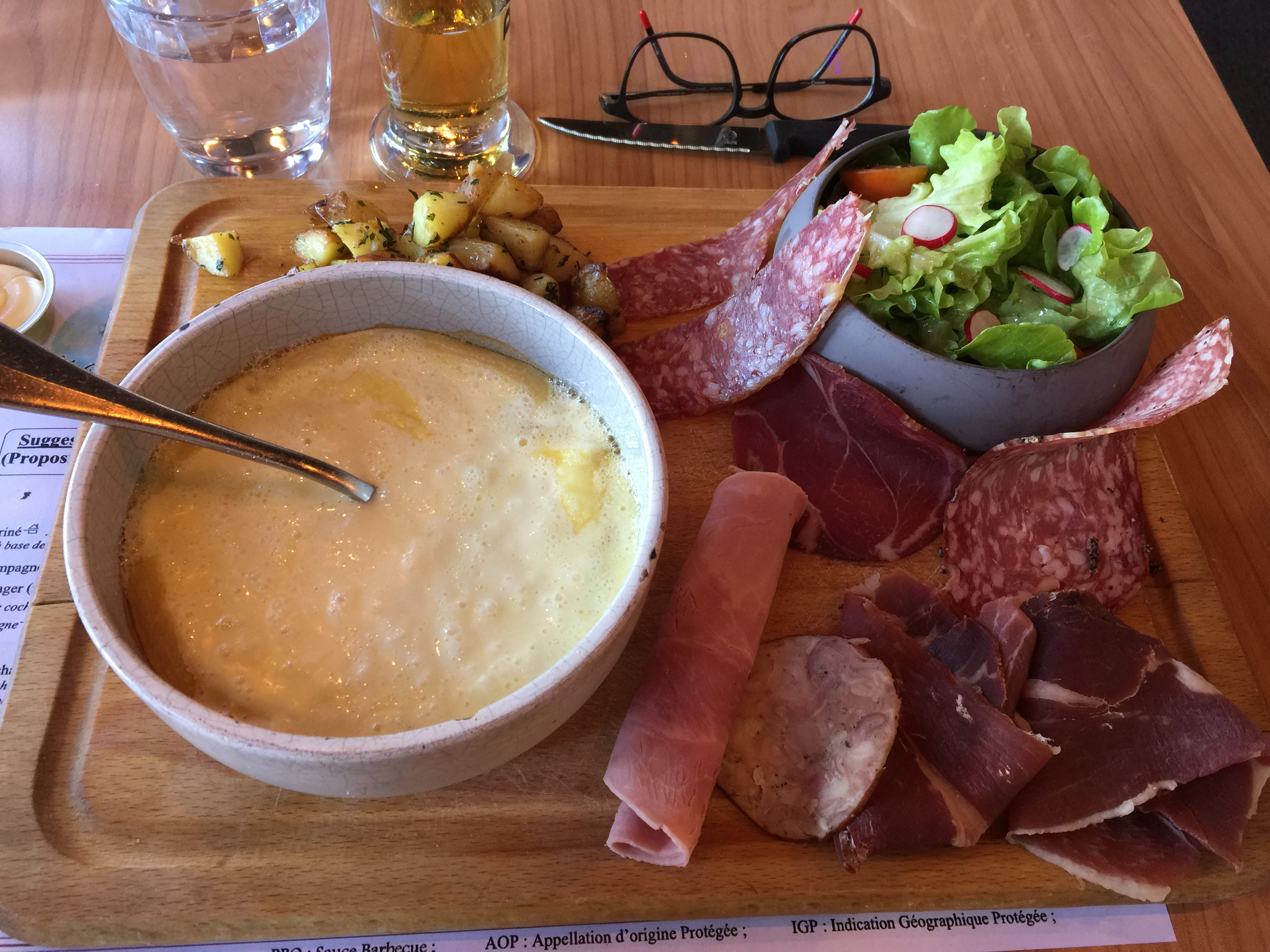 Une fondue savoyarde digne de ce nom. Très copieux. Le personnel vraiment très sympathique. On nous a même gentiment prêté un parapluie car il pleuvait en sortant du restaurant et nous avions 20min de marche jusqu a notre hôtel.