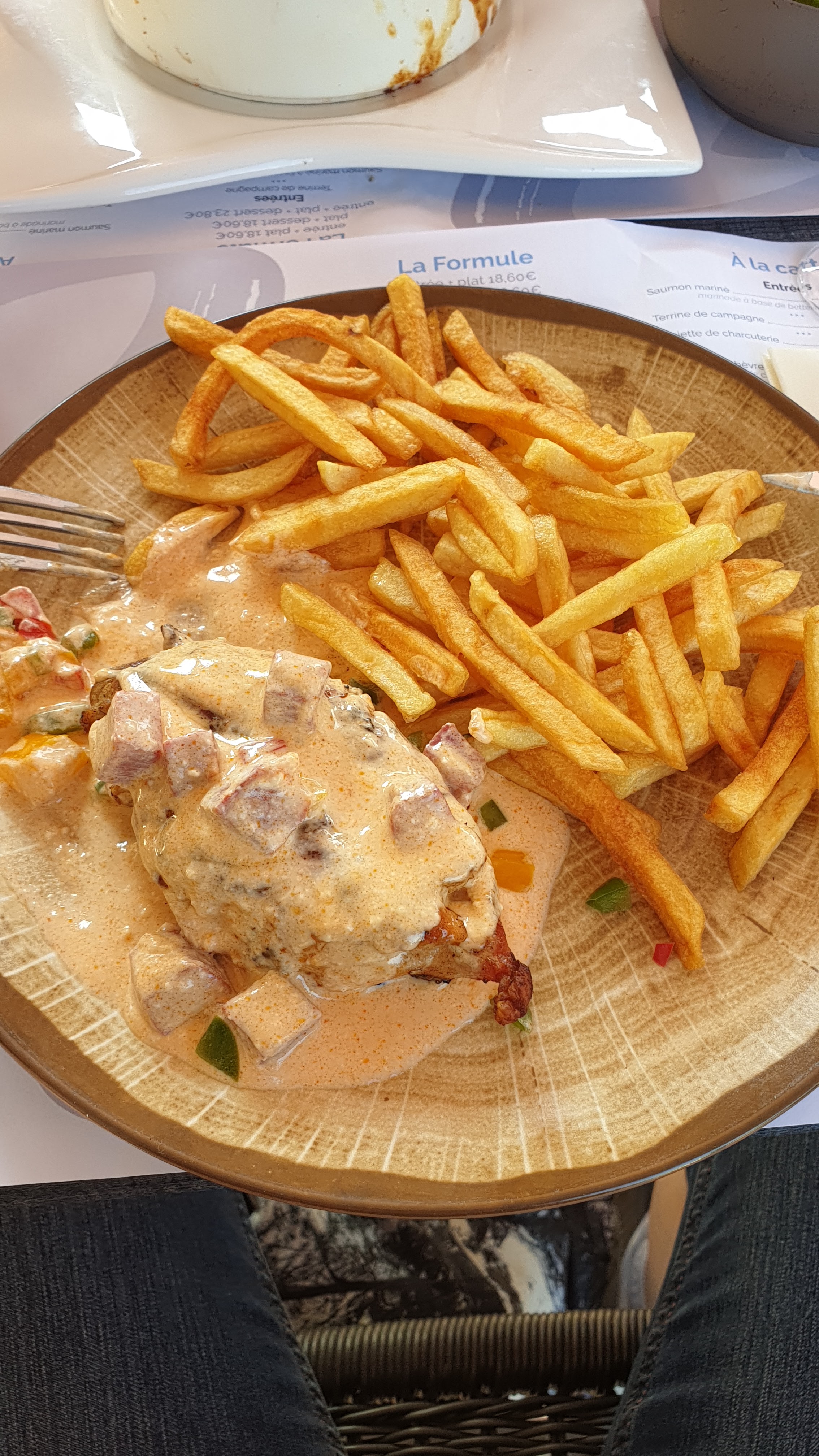 Personnel très agréable et des produits de qualité. Le feux filet est tendre et délicieux. Le poulet est juteux avec la sauce aux chorizos parfaite. Les frites maison sont très bonne et les desserts gourmands. Le prix est raisonnable (19,5 € plat + dessert). Je recommande.