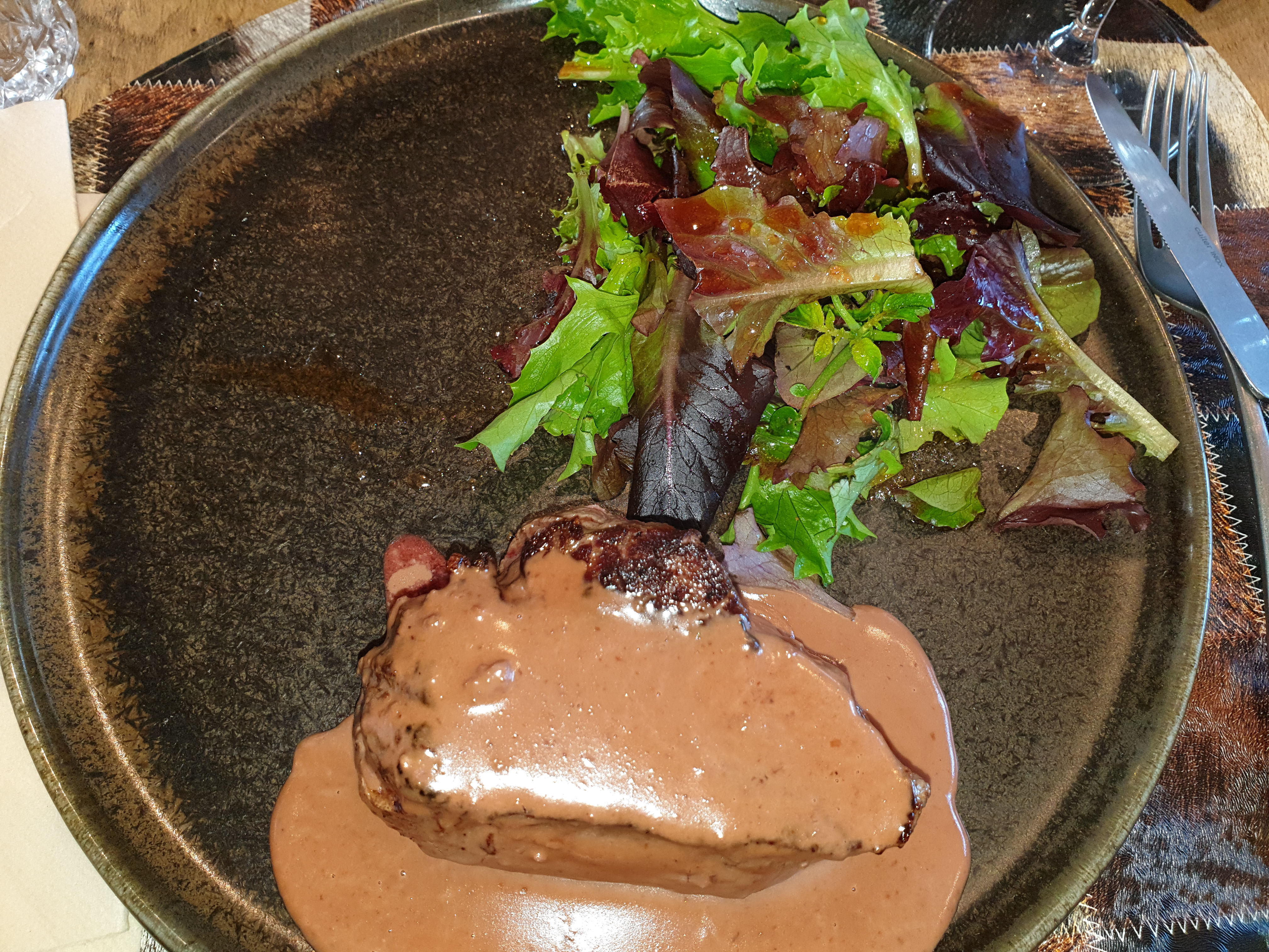 Belle découverte, croquettes délicieuses. La sauce du chef qui accompagne le steak, une belle surprise... Nathalie est souriante et le chef vient demander si nous sommes contents, que vouloir de plus