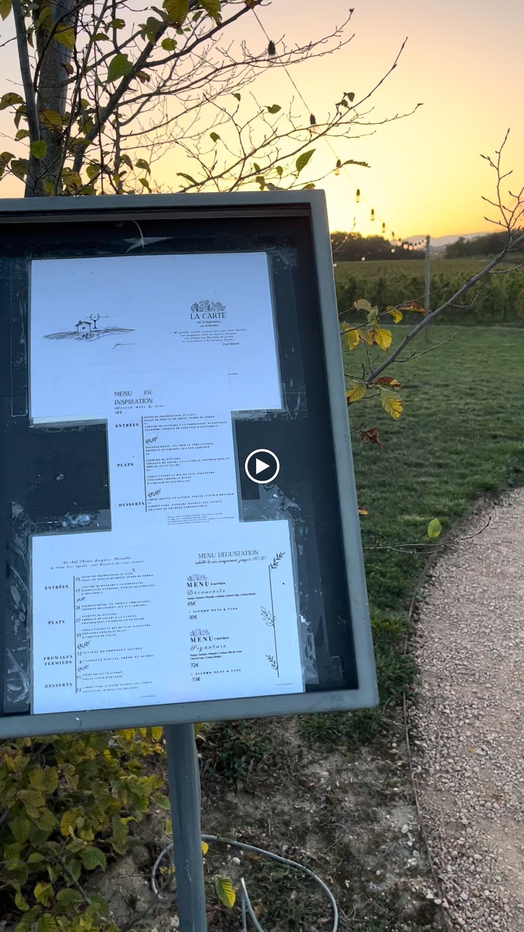 Superbe expérience, un menu original goûteux et plein de saveurs variées, un service très aimable et beau choix de vin dans un cadre agréable au milieu des vignes. Menu végétal dispo également.