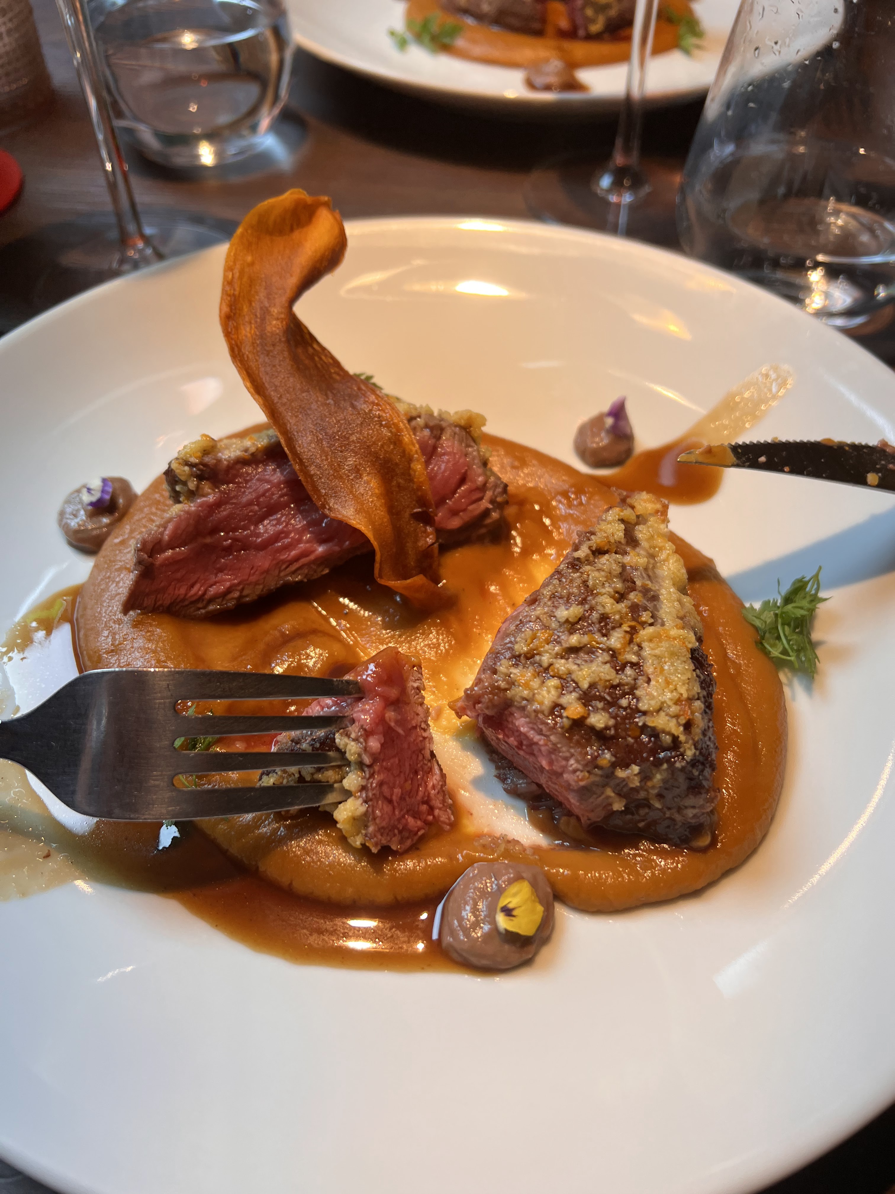 Une étape gourmande inoubliable. La carte semble modeste mais elle est très bien composée; l'originalité et la créativité culinaires sont clairement au rendez-vous. L'équipe en cuisine est très motivée et au moment où on vous apporte les assiettes, vous savez de quoi sont capables de vrais professionnels passionnés par leur métier. Quelques minies erreurs de service au niveau synchronisation mais c'est un détail par rapport aux instants privilégiés offerts par ce restaurant