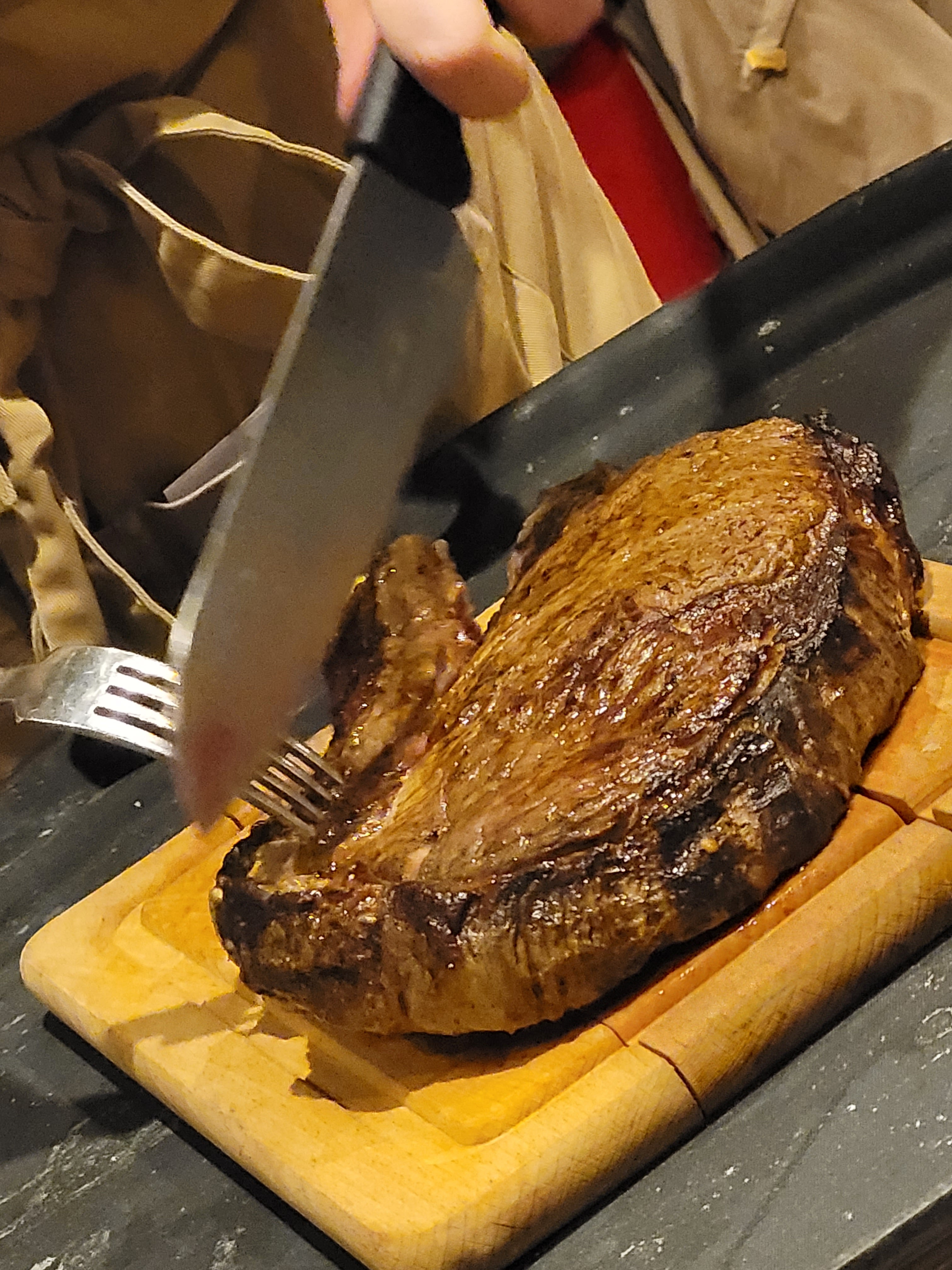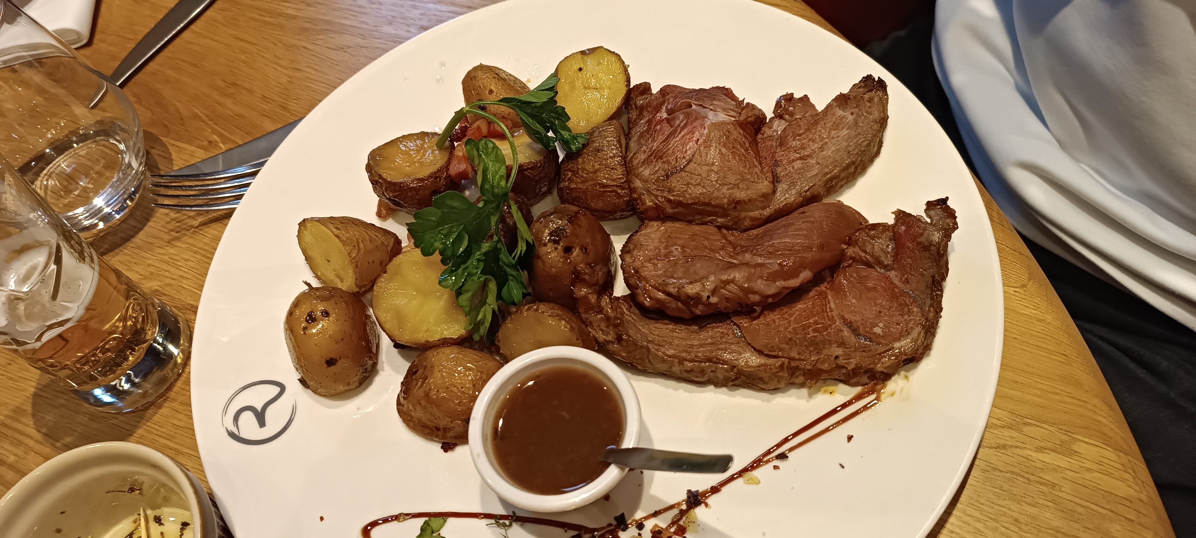 Restaurant testé le lendemain d’un autre restaurant de viandes incroyable, peut être cela qui fausse mon avis. Concernant le cadre , rien à dire le r’cadre est beau. Concernant le service, mis à part l’oublie des cafés rien à redire non plus, personnels souriants et serviables. En revanche la cuisine n’était pas parfaite… Concernant mon plat en photo, rien à dire sur la viande, pas mauvais, mais rien d’exceptionnel non plus. En revanche, accompagnement un peu fade. Plus gros bémol sur 2 points : - la « grosse planche » à partager vendue pour 5-6 personnes est vraiment très light et coûteuse pour la quantité. - des amis ont pris un pavé de bœuf dans lequel un gros nerf était présent. De ce fait, bien 25-30g qui n’étaient pas mangeable (dommage sur 180). En résumé, pas mal mais on s’attendait à mieux, surtout niveau cuisine.