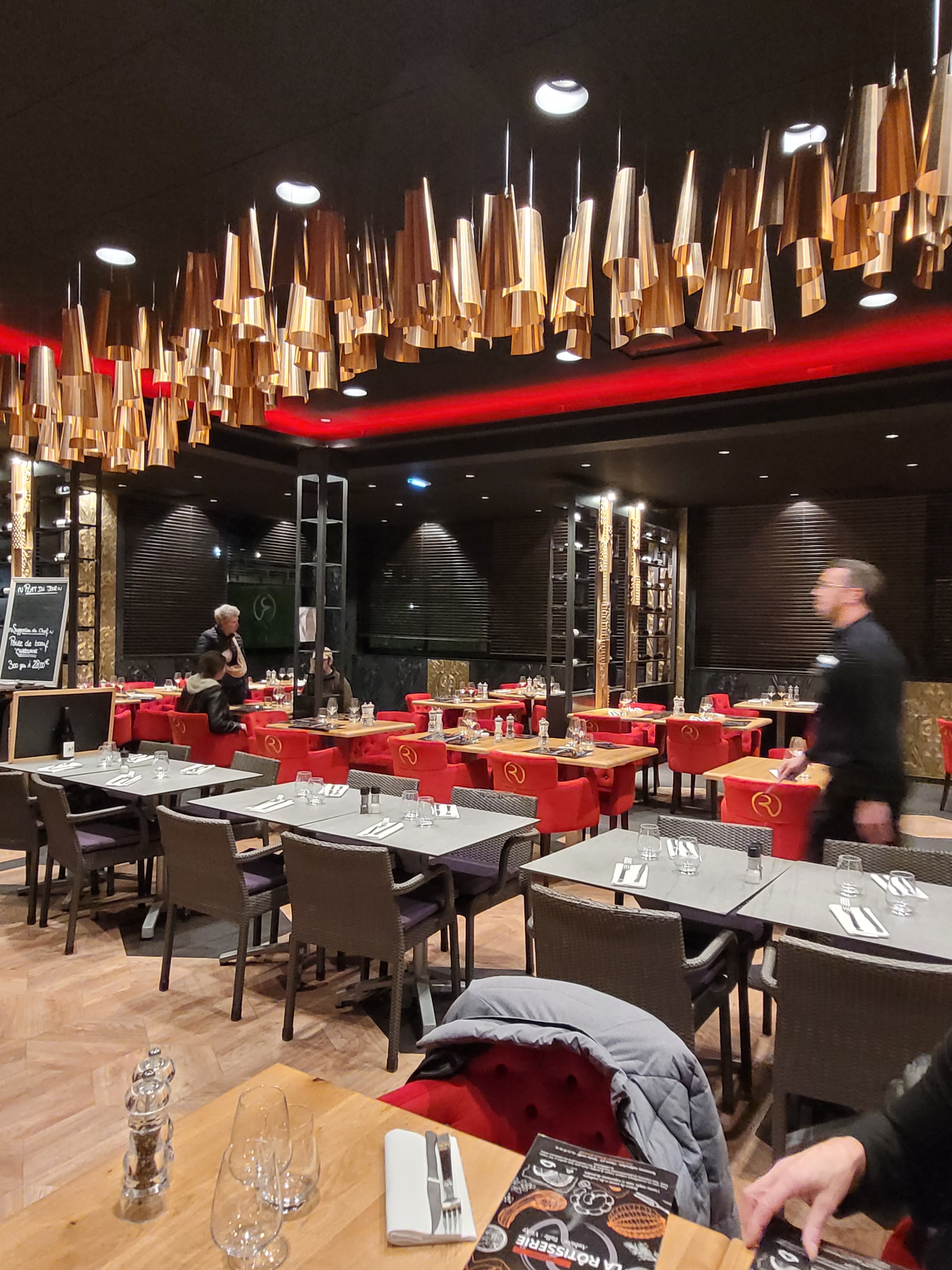 Restaurant sympa, il est intéressant de voir le côté rôtisserie. La cuisine est bonne, sauce aux cèpes excellente, saumon très goûteux, velouté de courgette intéressant, viande bonne même si un peu trop cuite pour du à point. Bémol toutefois pour les accompagnements frites et patates un peu bof. Le point fort était le service, nous sommes tombés sur un grand serveur brun très gentil, courtois, serviable et aimable qui nous a donné une expérience d'accueil valant largement un 5 étoiles ! C'était extrêmement agréable. Les autres serveurs avaient l'air très gentils aussi.