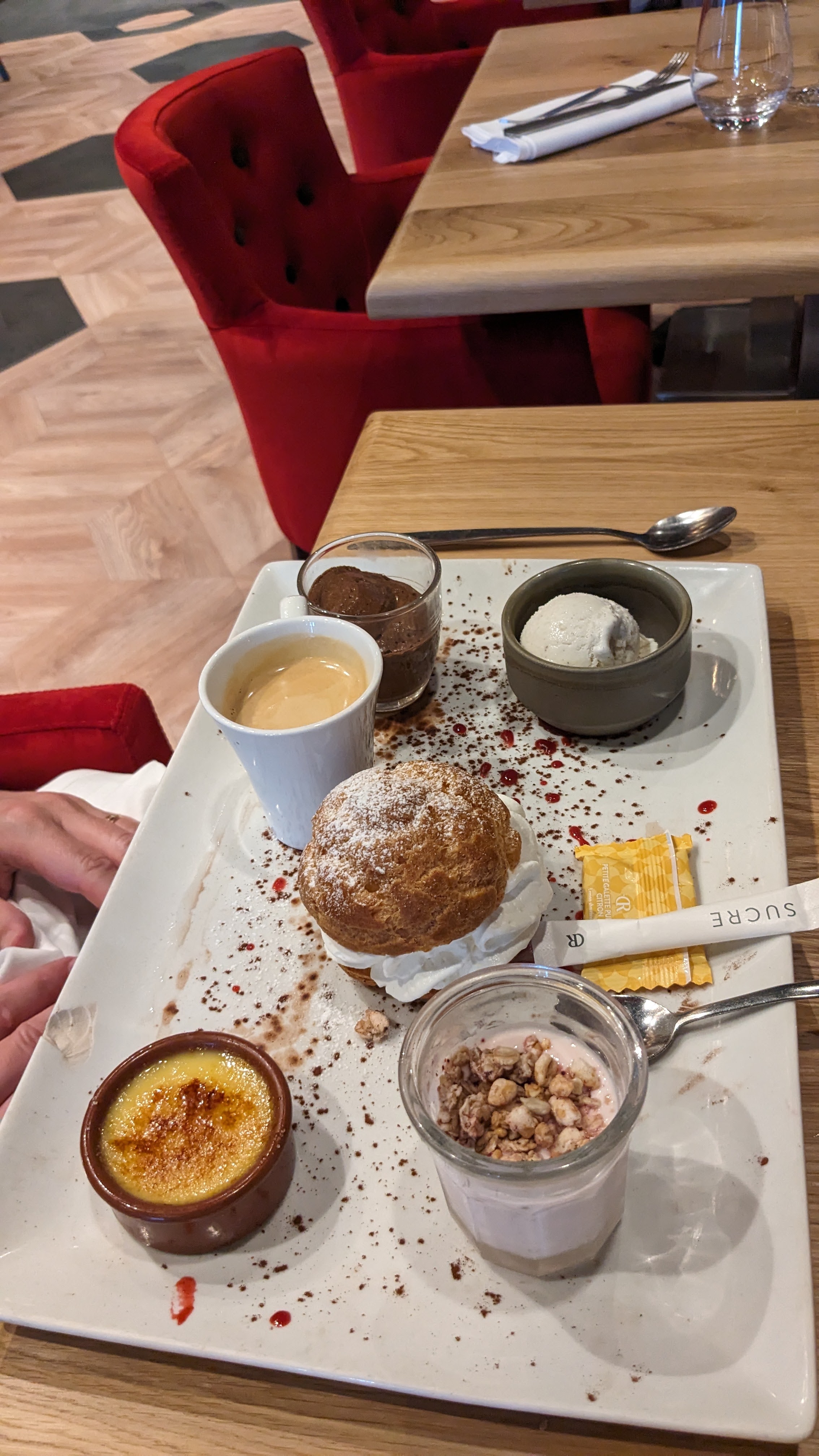 Très bon accueil, repas et service ! Le café de la rôtisserie (café gourmand en qtés plus restreintes) est déjà très copieux et savoureux pour la petite note sucrée en fin de repas. Tout petit bémol, il y avait légèrement trop de ketchup dans le hamburger du menu enfant. Parfait, MERCI