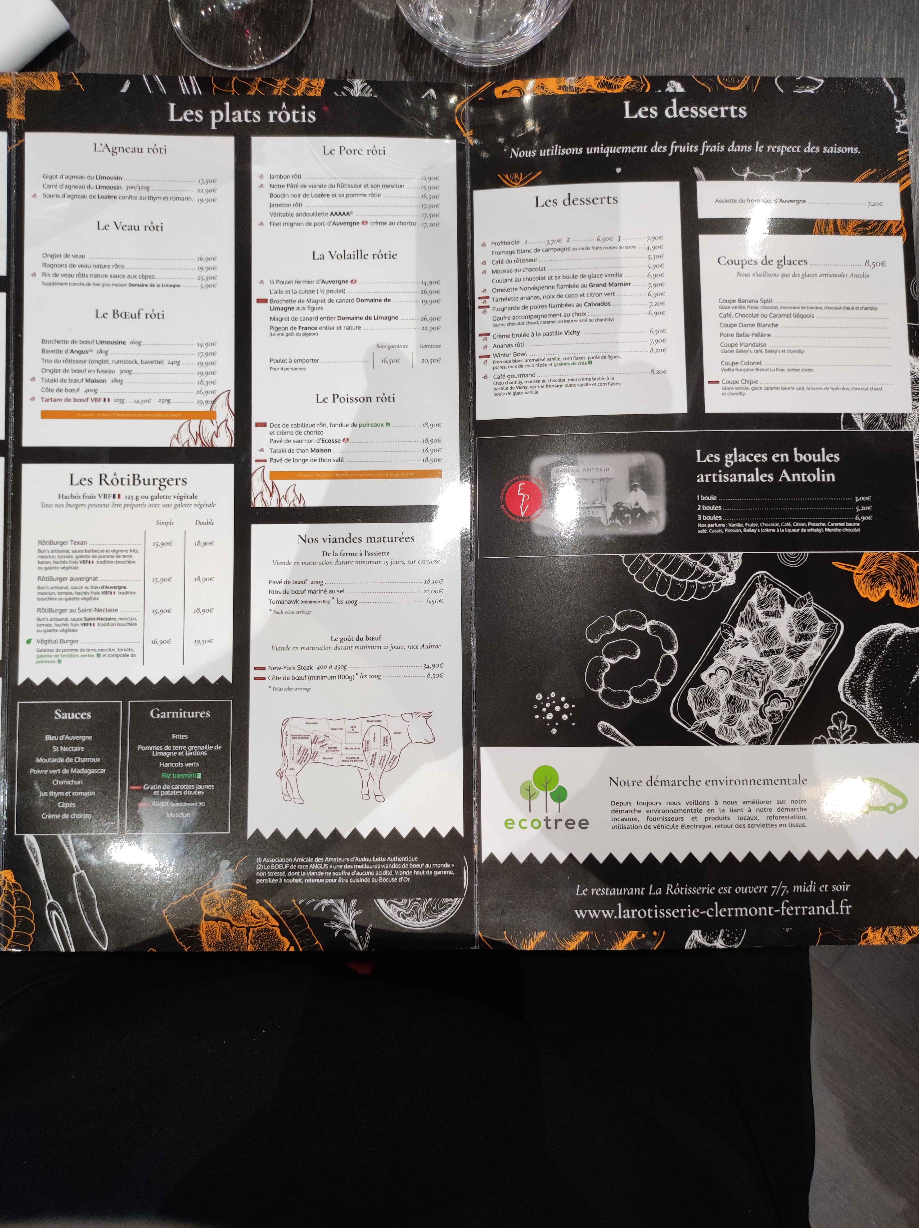 Bonjour à tous ! De passage sur Clermont Ferrand, première fois dans ce resto, et aucune déception bien au contraire ! Délicieux, copieux, cadre très classe et agréable, le petit plus de voir la rotisserie, et le personnel impeccable. Un seul mot, bravo et ne changez rien!