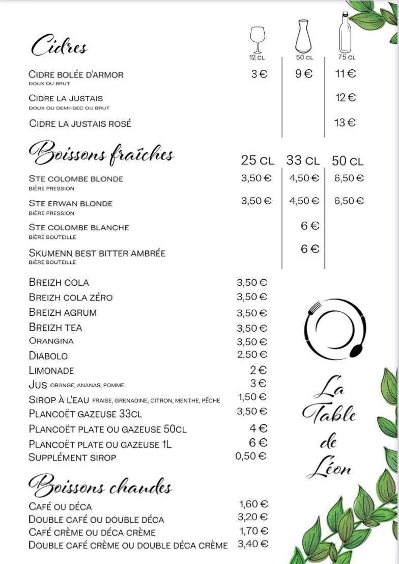 Je recommande la table de Léon Très bon accueil, personnel dynamique et souriant, service excellent et félicitations au chef pour sa cuisine