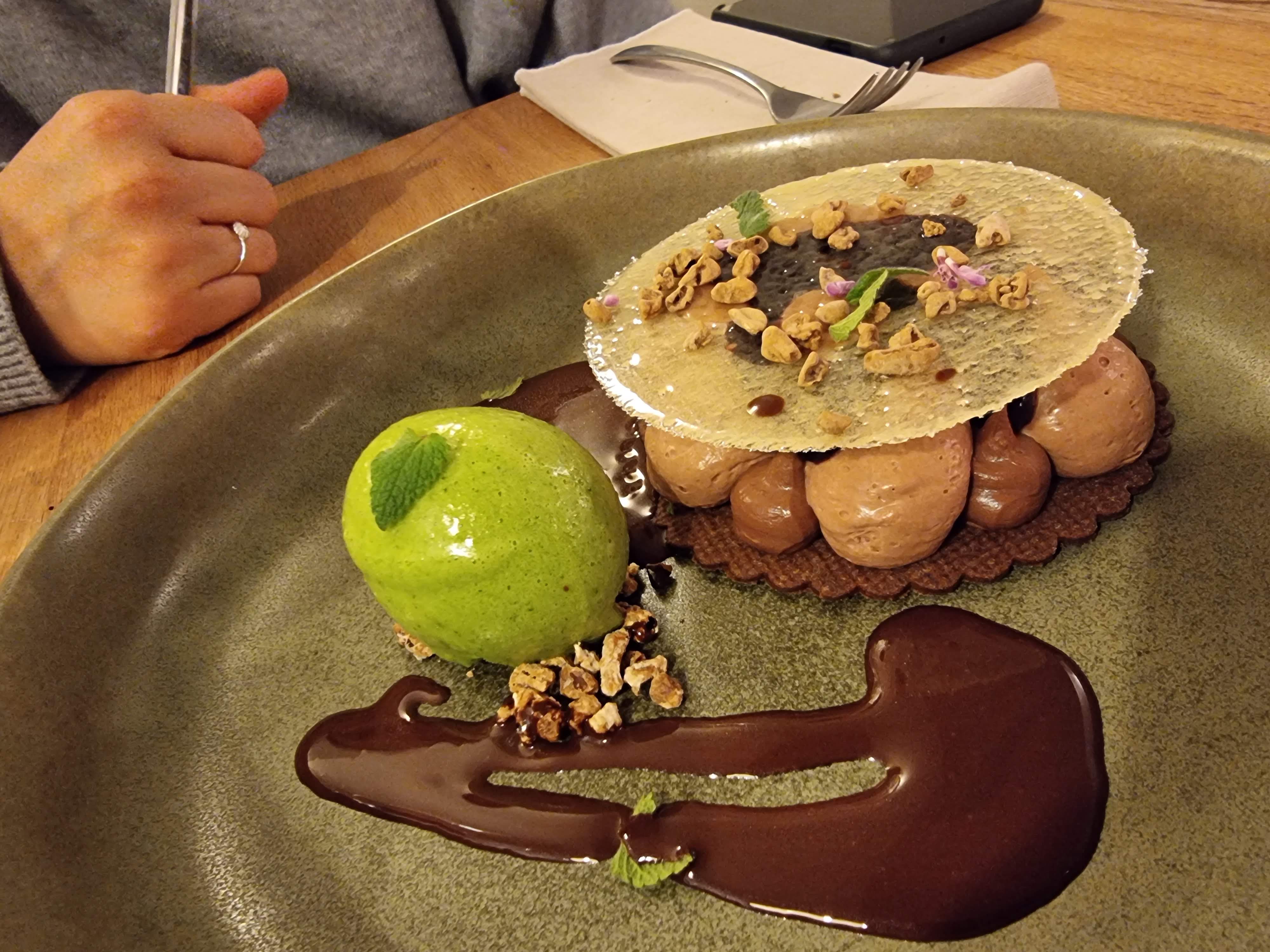 Un délice !!! Je conseil. Un accueil au top, elle explique très bien le repas. Enfin un resto ou nous avons pas eu froid ( jolie cheminée).