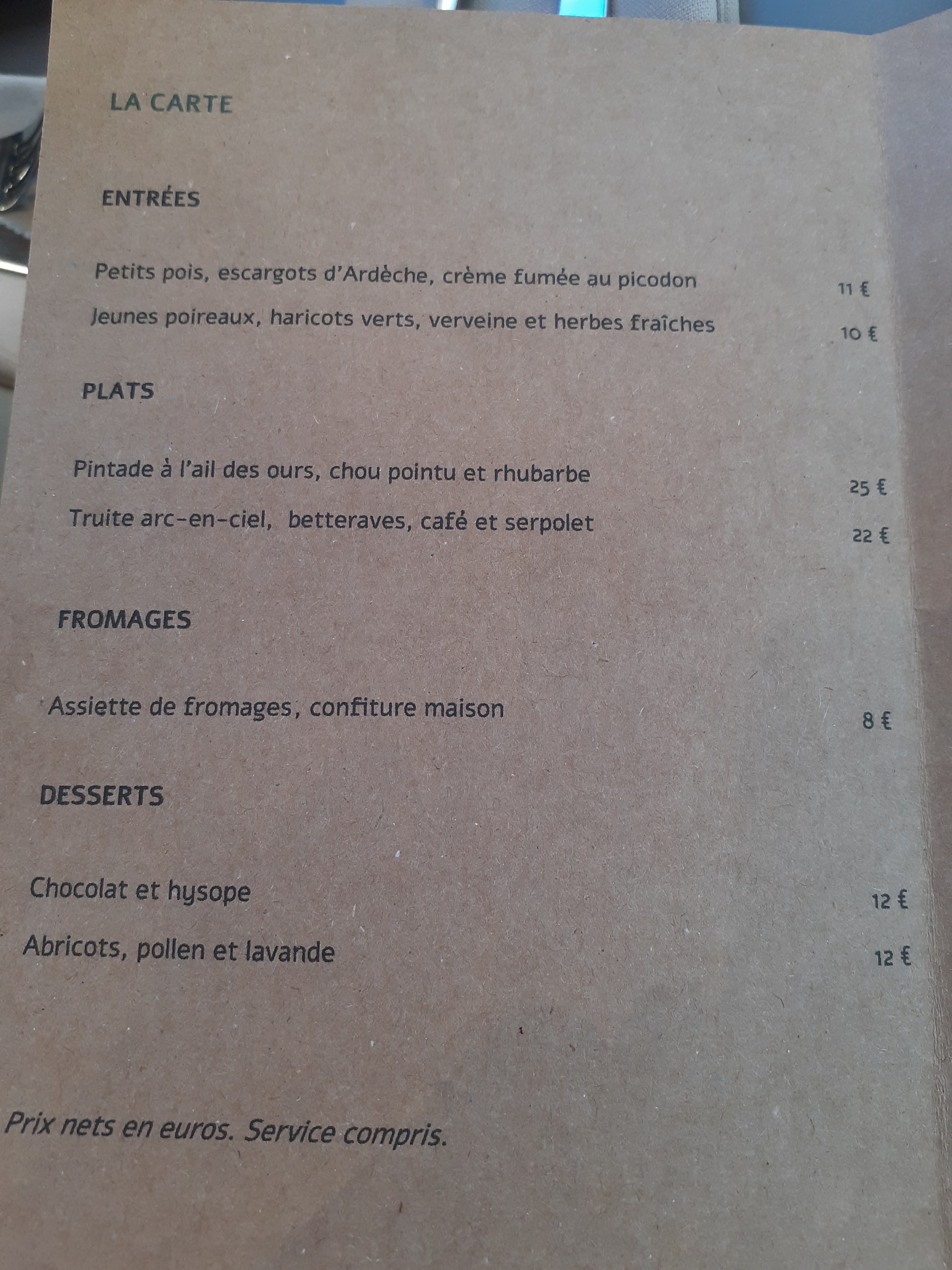 Une jolie découverte au centre d un petit village de caractère. Nous y avons passé une magnifique soirée où nous avons été accueilli par Margaux qui nous a servi l apéritif maison très original ensuite une succession de plats tous plus délicieux les uns que les autres. Une explosion de goûts pour notre palais. Un petit restaurant qui mérite un service par la jolie Margaux toujours souriante et pro où l on se sent comme à la maison sans oublier les saveurs retrouvées dans l assiette par le chef Sylvain. Encore un grand merci à cette belle équipe. J espère revenir un jour si je reviens en Ardèche 💜