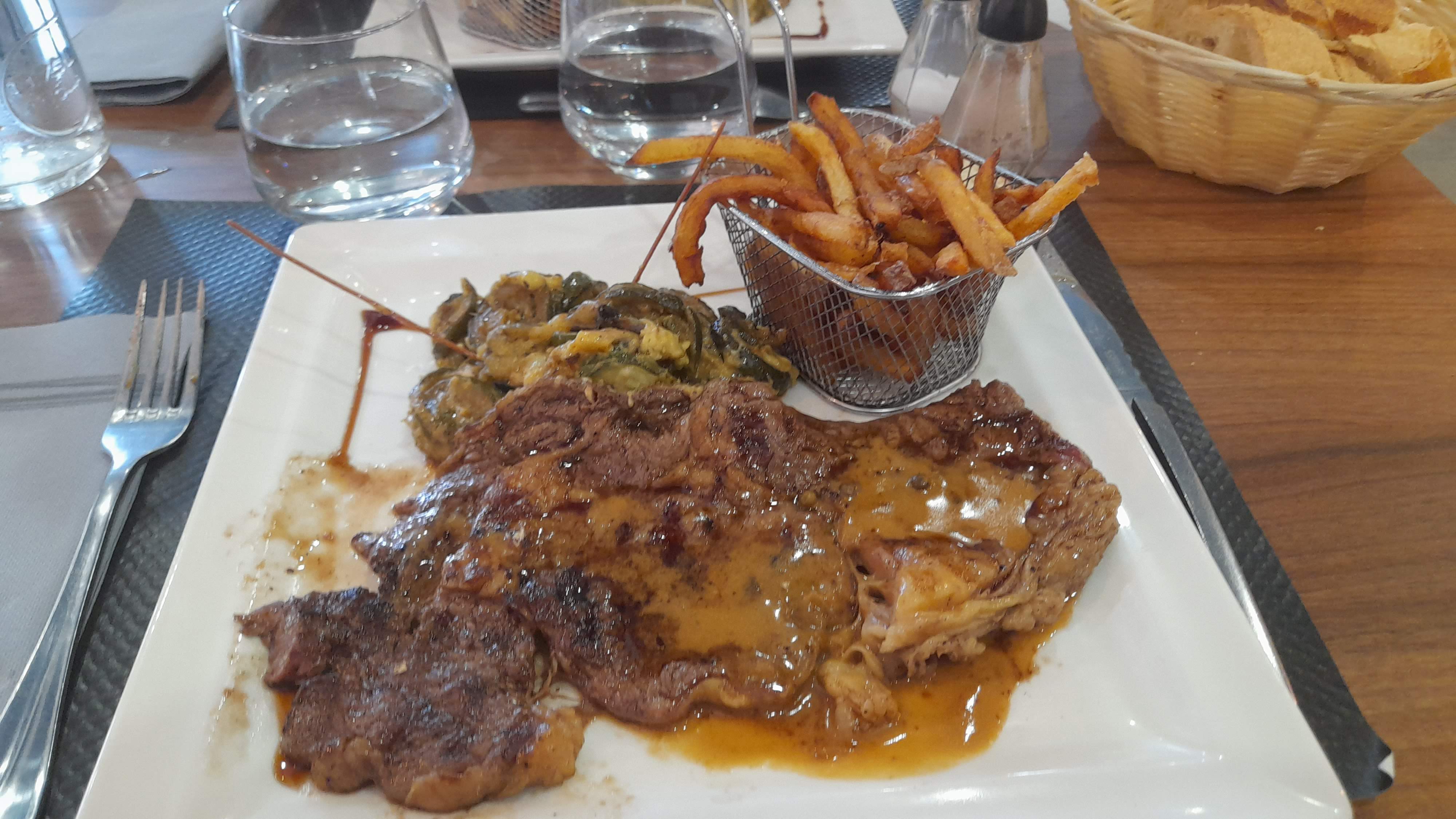 Très bon repas , pour ma part j'ai choisi l'entrecôte servie avec des frittes , de la salade et une sauce absolument délicieuse. La viande est de très bonne qualité et les accompagnements succulents ! Je recommande pour un bon repas du midi avec des bon produits du coin