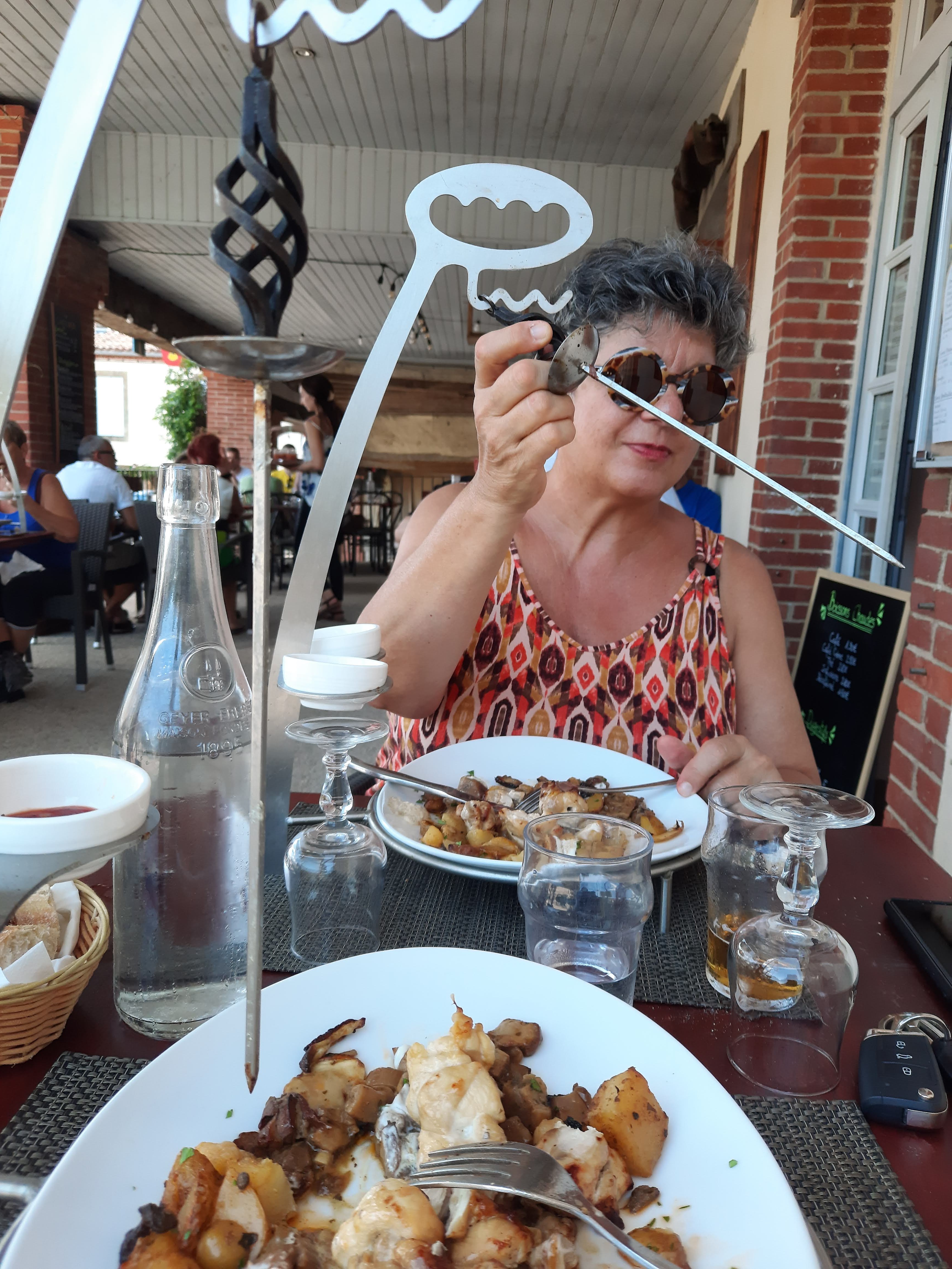 Pause déjeuner avant d'aller au vélorail d'Armagnac. On a tout aimé de l'ambiance jusqu'au menu.