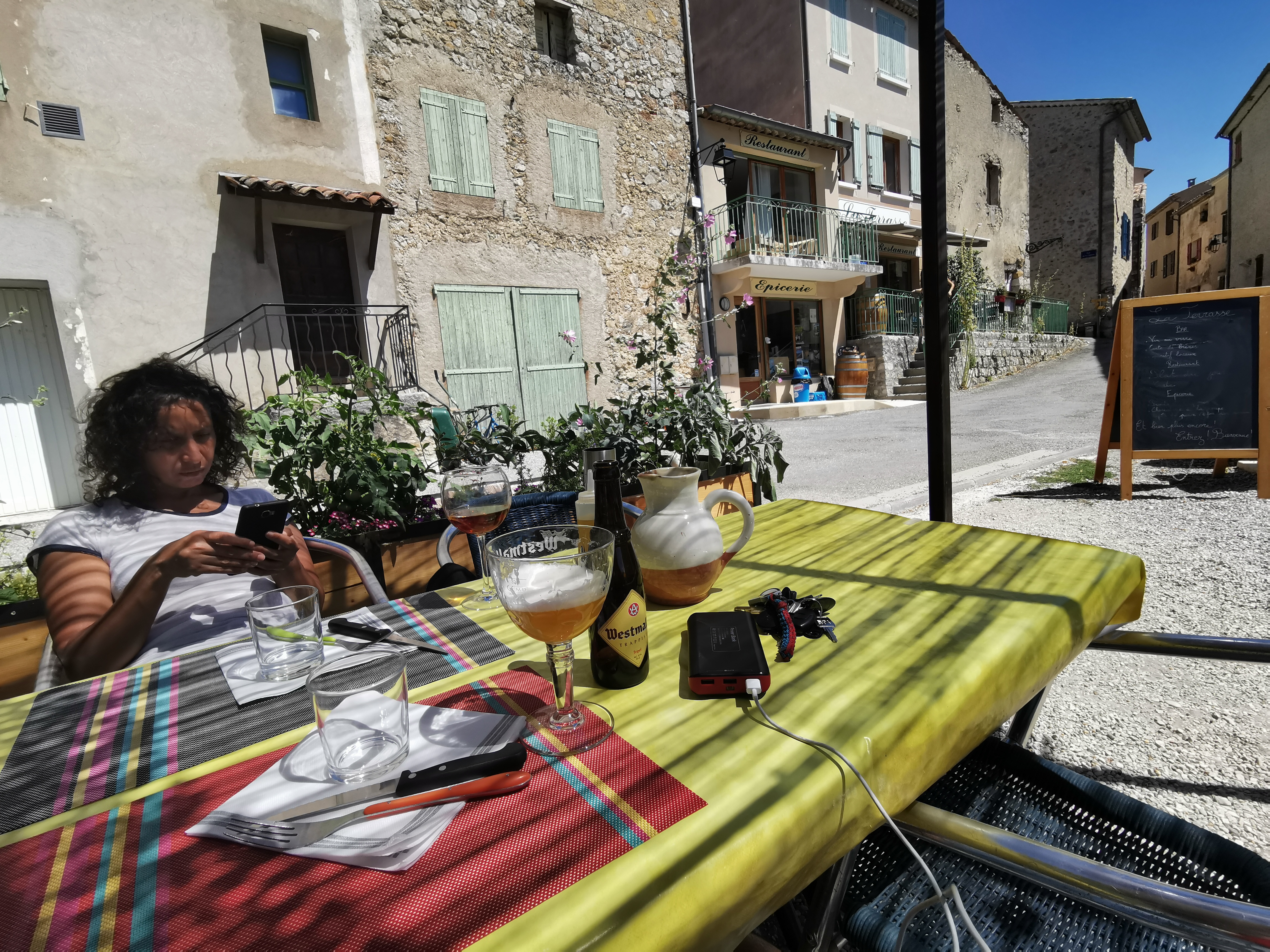 Ce petit resto mérite les avis précédents. Ici tout respire la simplicité, la convivialité et bien sûr une très bonne cuisine goûteuse, généreuse qui fait travailler les producteurs locaux. Alors imaginez une tonnelle sur une petite placette en haut d'un charmant petit village avec vue imprenable sur les gorge du Verdon sous un soleil magnifique, une bonne bière (ou un rosé bien frais) et une délicieuse recette de ratavioles sortie de l'esprit vagabond de la patronne ... une tuerie (les ratavioles). Essayez aussi l'assiette de charcuterie, tout aussi goûteuse. Ce resto fait partie du réseau des bistrots de pays qui marchent très bien dans le Sud-Est. Bref c'est bon, c'est sympa, c'est pas cher, c'est bien placé, on cause avec ses voisins ... que voulez-vous de plus ?