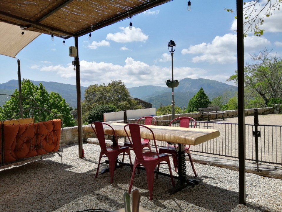 Une terrasse paisible, ombragée, aérée parfaite pour une petite pause lors de votre visite de Rougon sur la route des crêtes des gorges du Verdon. Le couple qui viendra s'occuper de vous est adorable !!