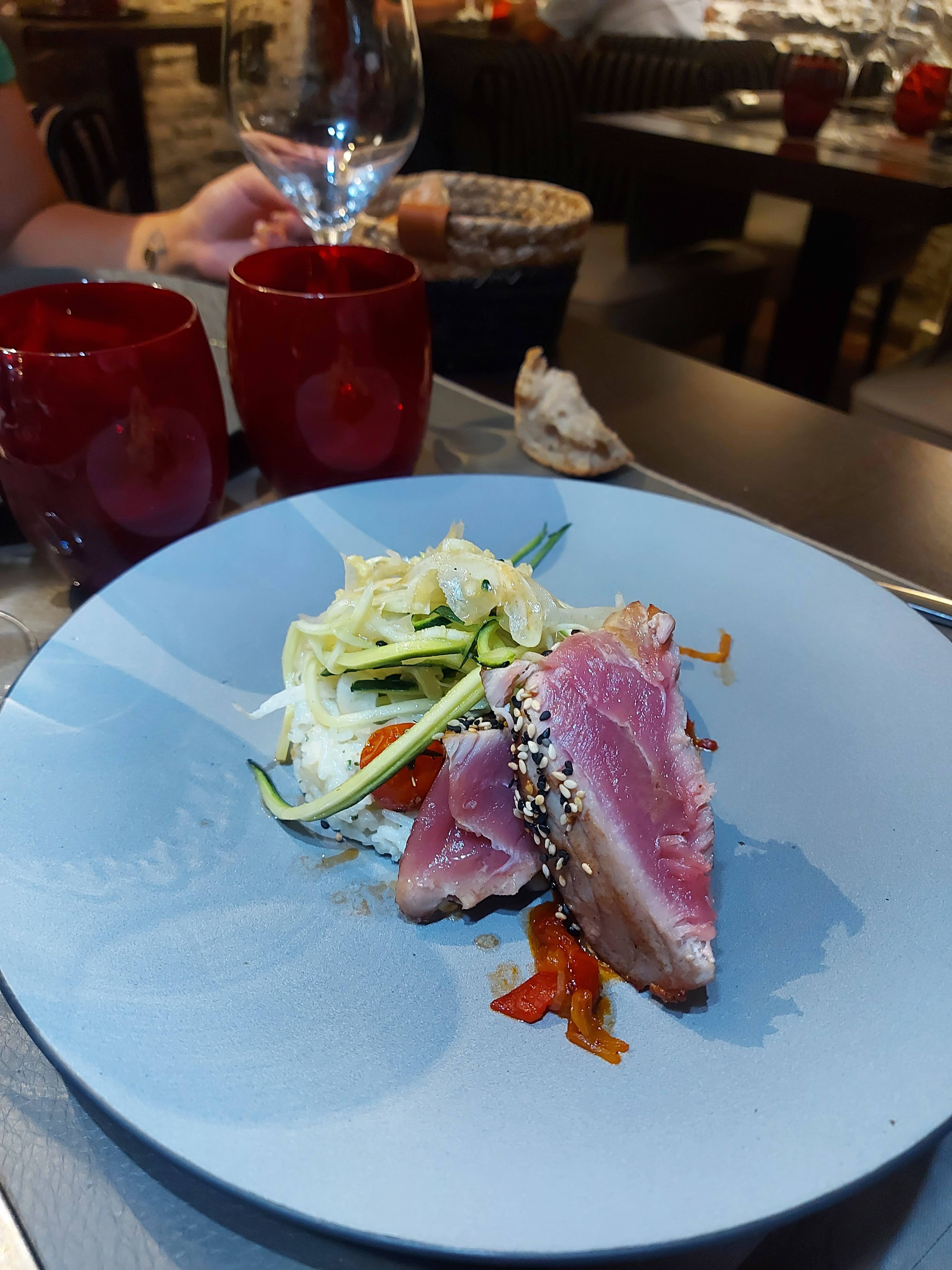 Notre deuxième visite et toujours enthousiastes. Cuisine à base de produits locaux très biens mis en valeurs. Originalité des plats et des vins dont une bonne partie vient des viticulteurs locaux. Cadre très agréable proche de la Tour et service chaleureux.