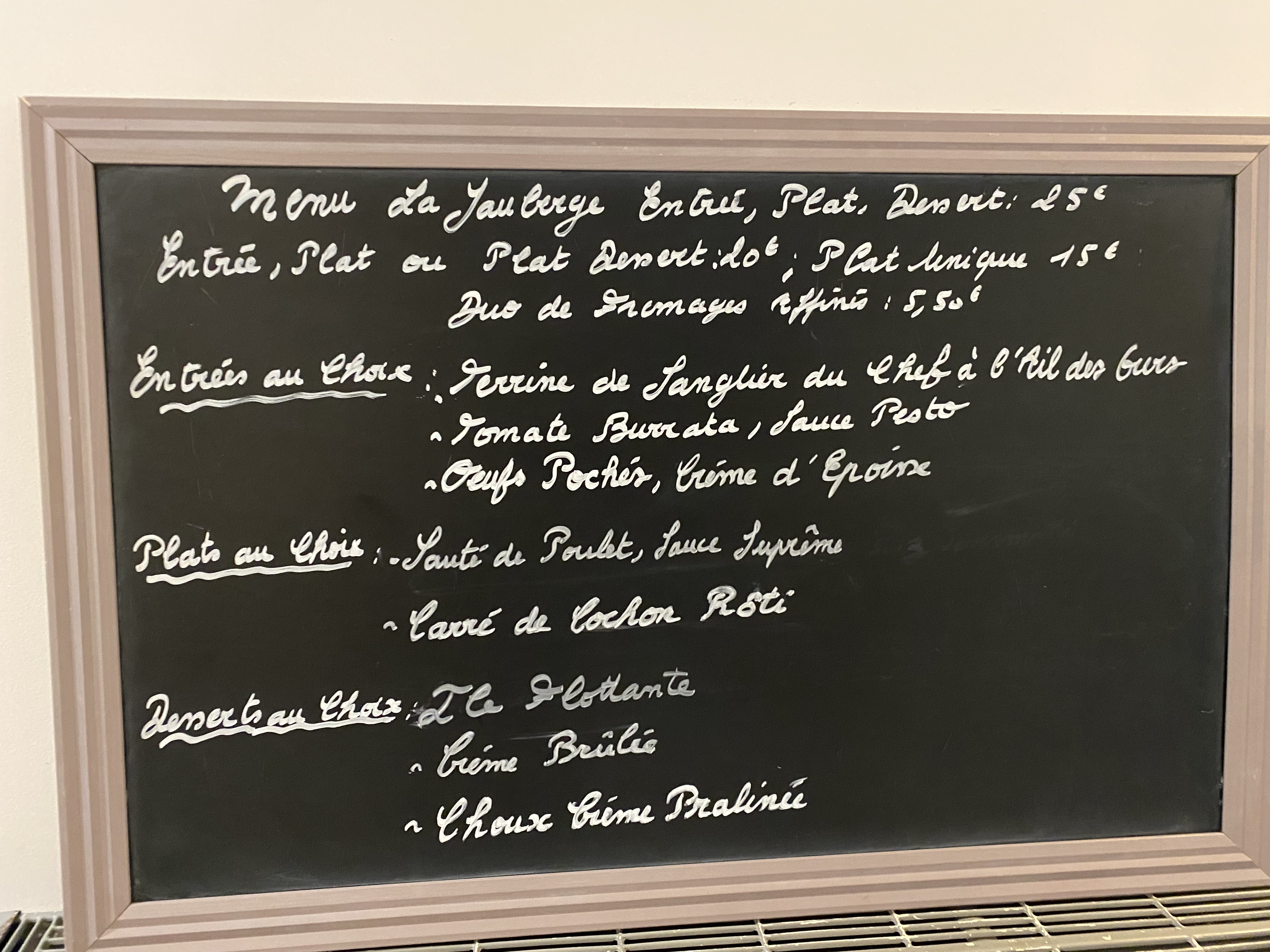 Très bon rapport qualité/prix. Les œufs en meurette sont excellents ! Les patrons très sympas. La vue de la terrasse sur les prés et les bois environnants est aussi un bel atout. Nous reviendrons.