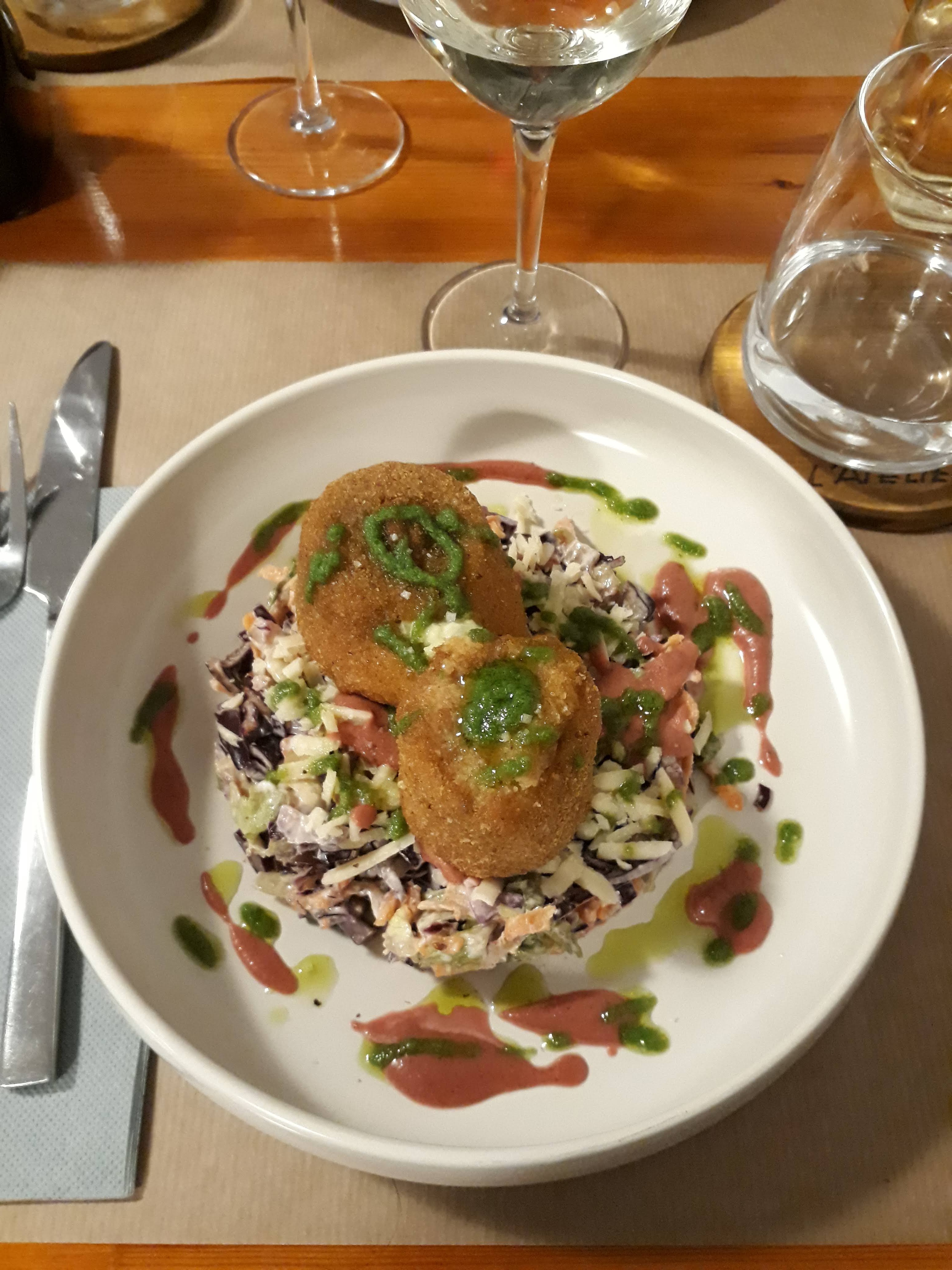 Un délice ! Plats excellents autant visuellement que gustativement. Un régal pour les papilles. Très copieux, prix raisonnable. Terrasse très agréable. A l’intérieur jolie déco. Propriétaire accueillant, sympathique et souriant. Au top !
