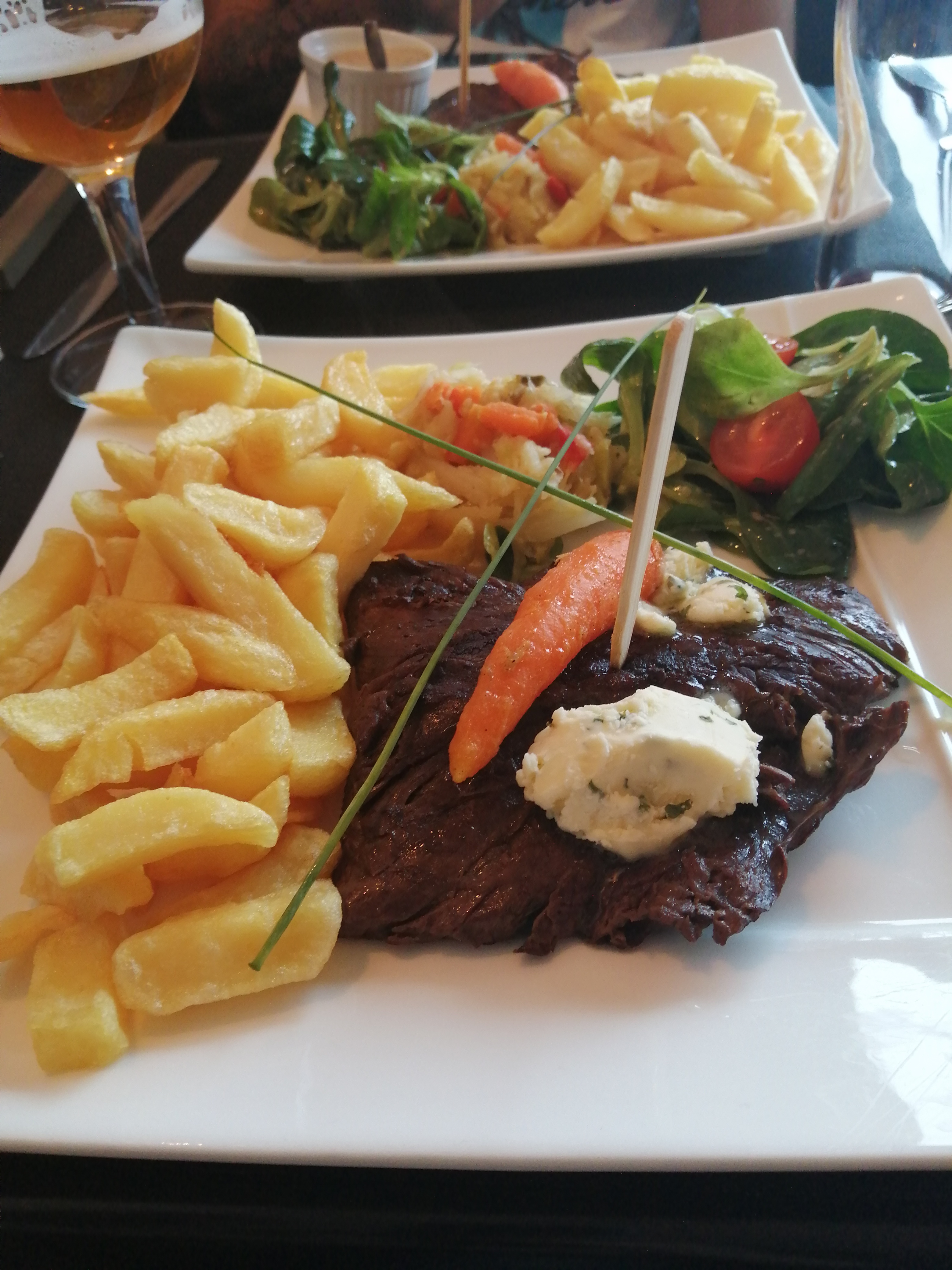 Repas de service entre collègues, j'ai pris un pavé de rumsteck très bon, large choix de bières et elles sont servi généreusement (40cl pour une 33cl).