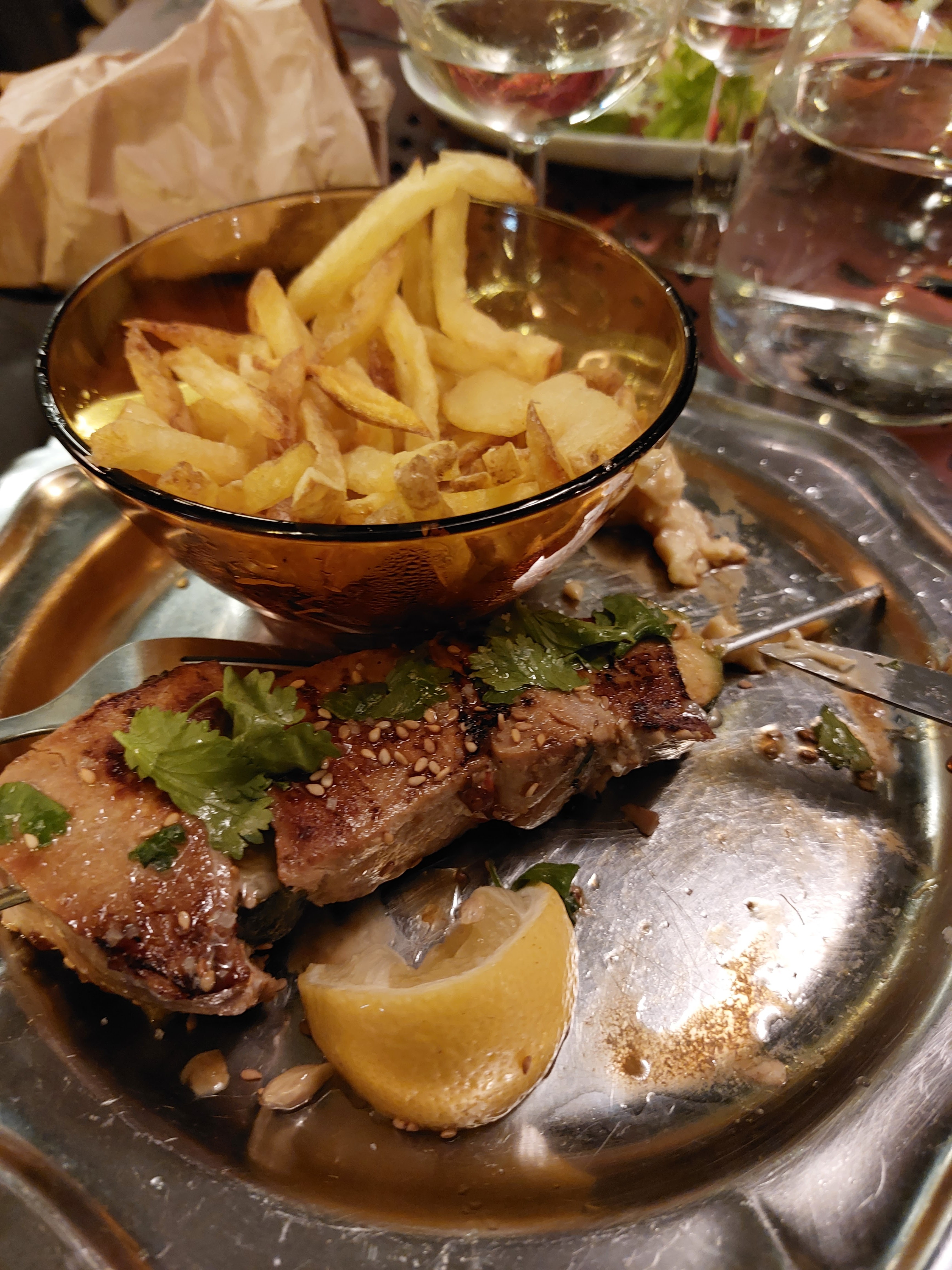 Brochette de boeuf excellentes, dessert tiramisu citron menthe , et tarte chocolat caramel : des tueries! Un personnel au top, un lieu que je recommande vivement. Réservez la veille, c'est tout le temps complet pour le jour même.