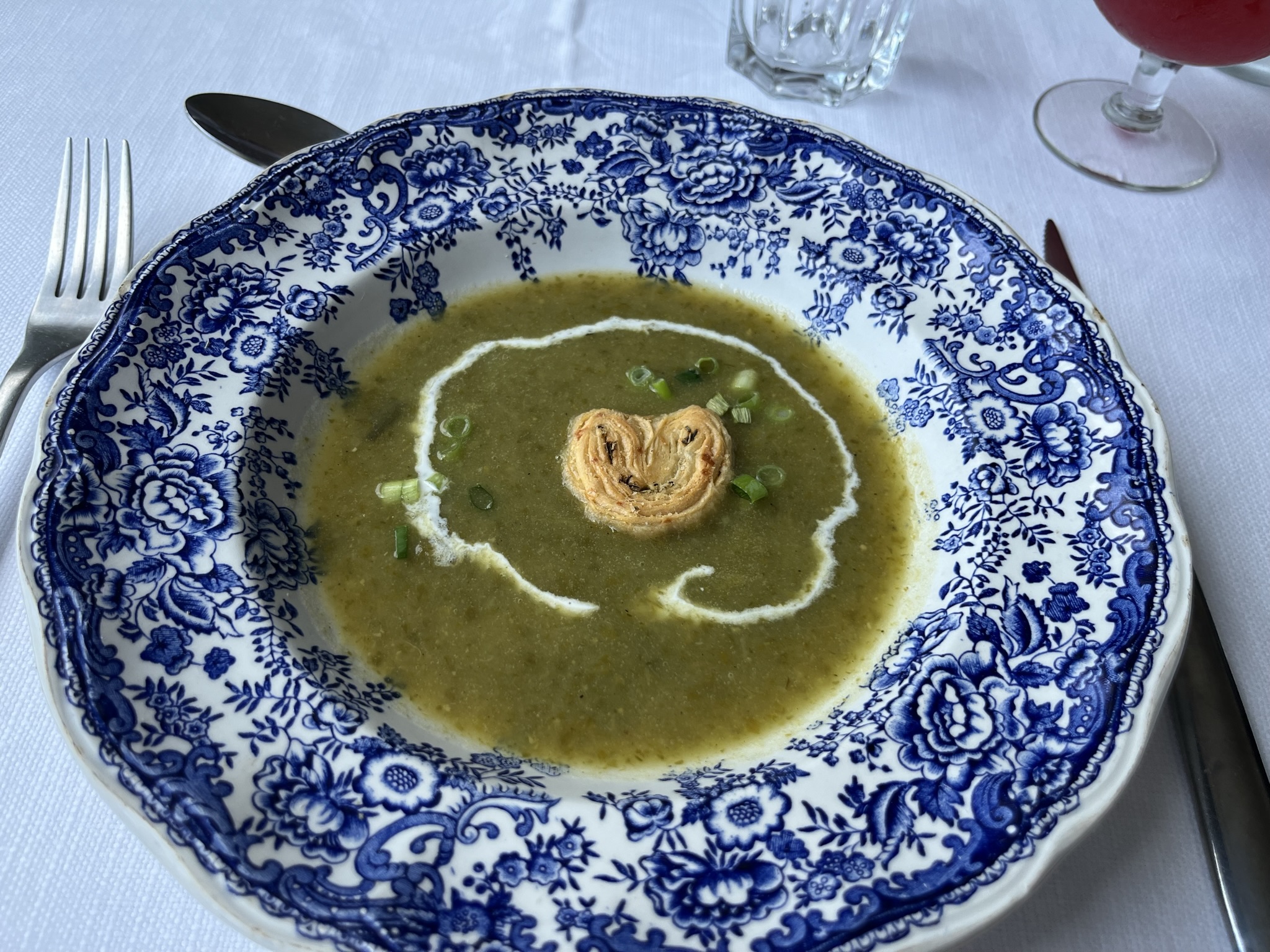 Bonne nourriture. Menu fixe uniquement et c'était super. Chaque assiette avait tellement de saveurs différentes, ayez faim. Le service est shabby-chic. Ça vaut vraiment le détour dans les collines