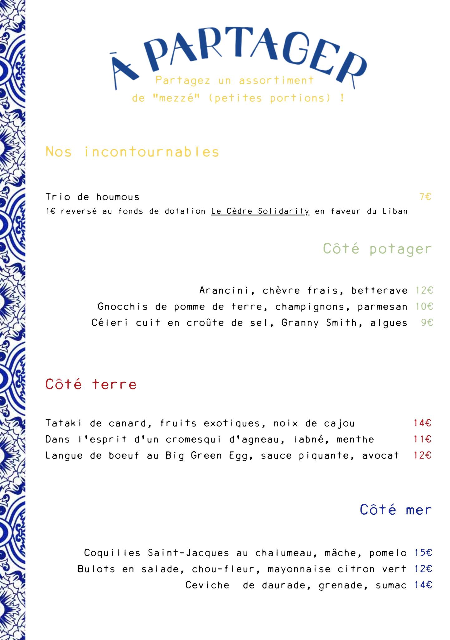 Posté le 13/10/2024 à 12:27"Super restaurant, avec des inspirations libanaises très intéressantes qui nous font découvrir des alliances gustatives délicieuses. En sortant, on a bien mangé, niveau qualité comme quantité!"