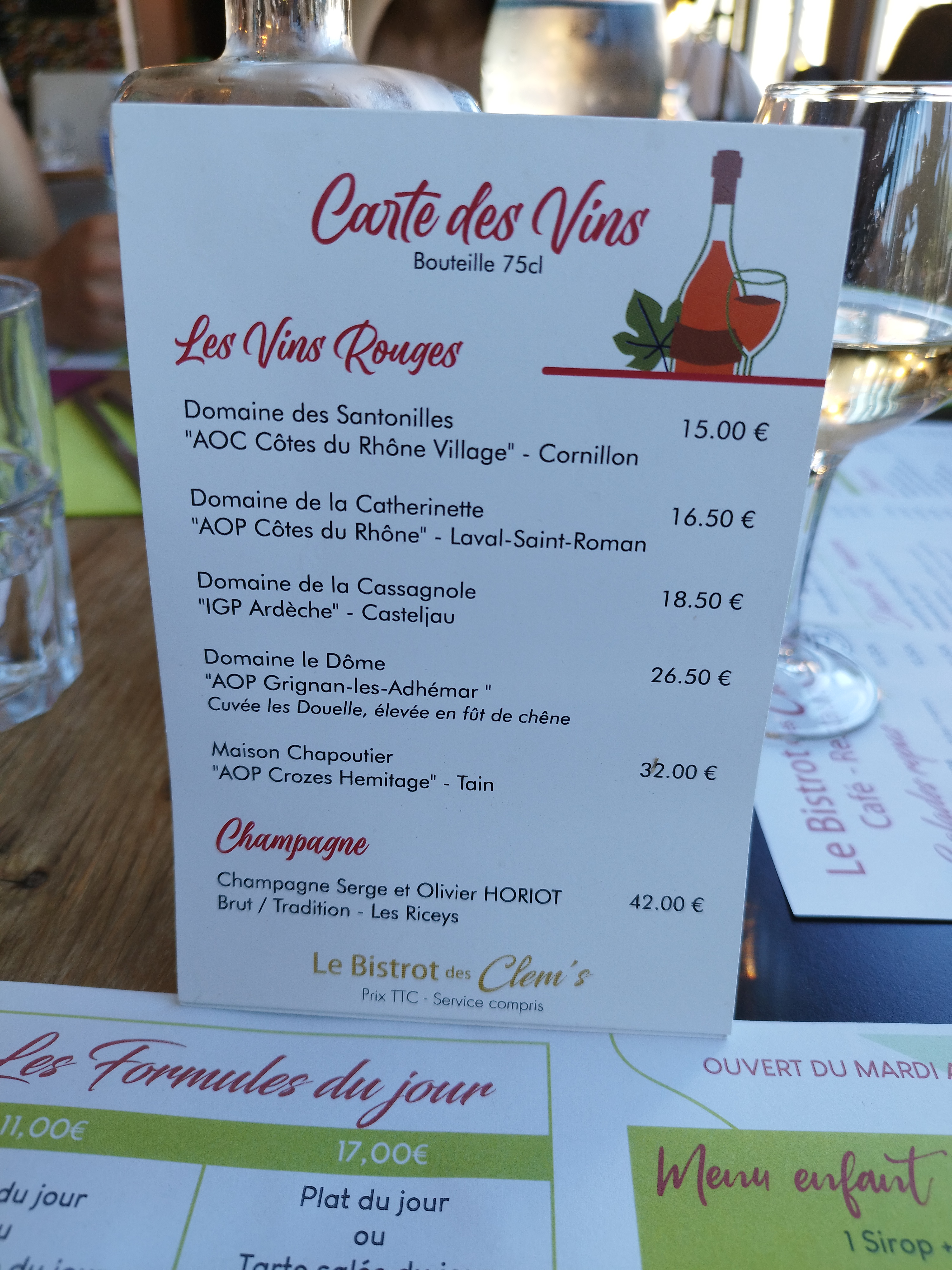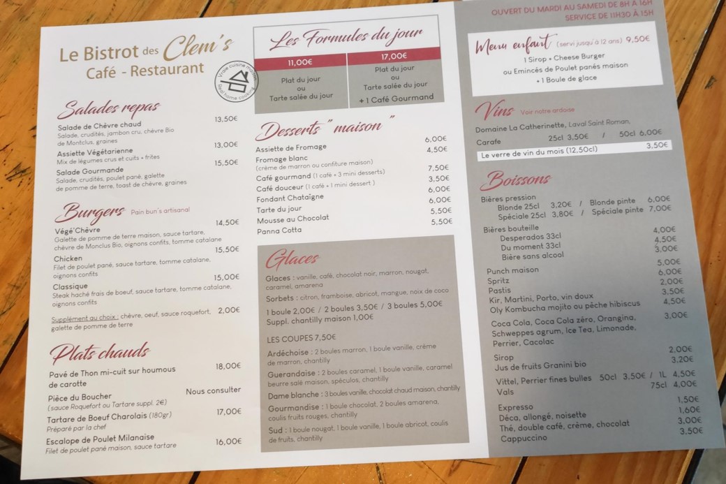Un bon moment, cuisine simple et maîtrisée. un bon rapport qualité prix, vin local à prix correct. A découvrir sans hésitation. Merci les Clem's.