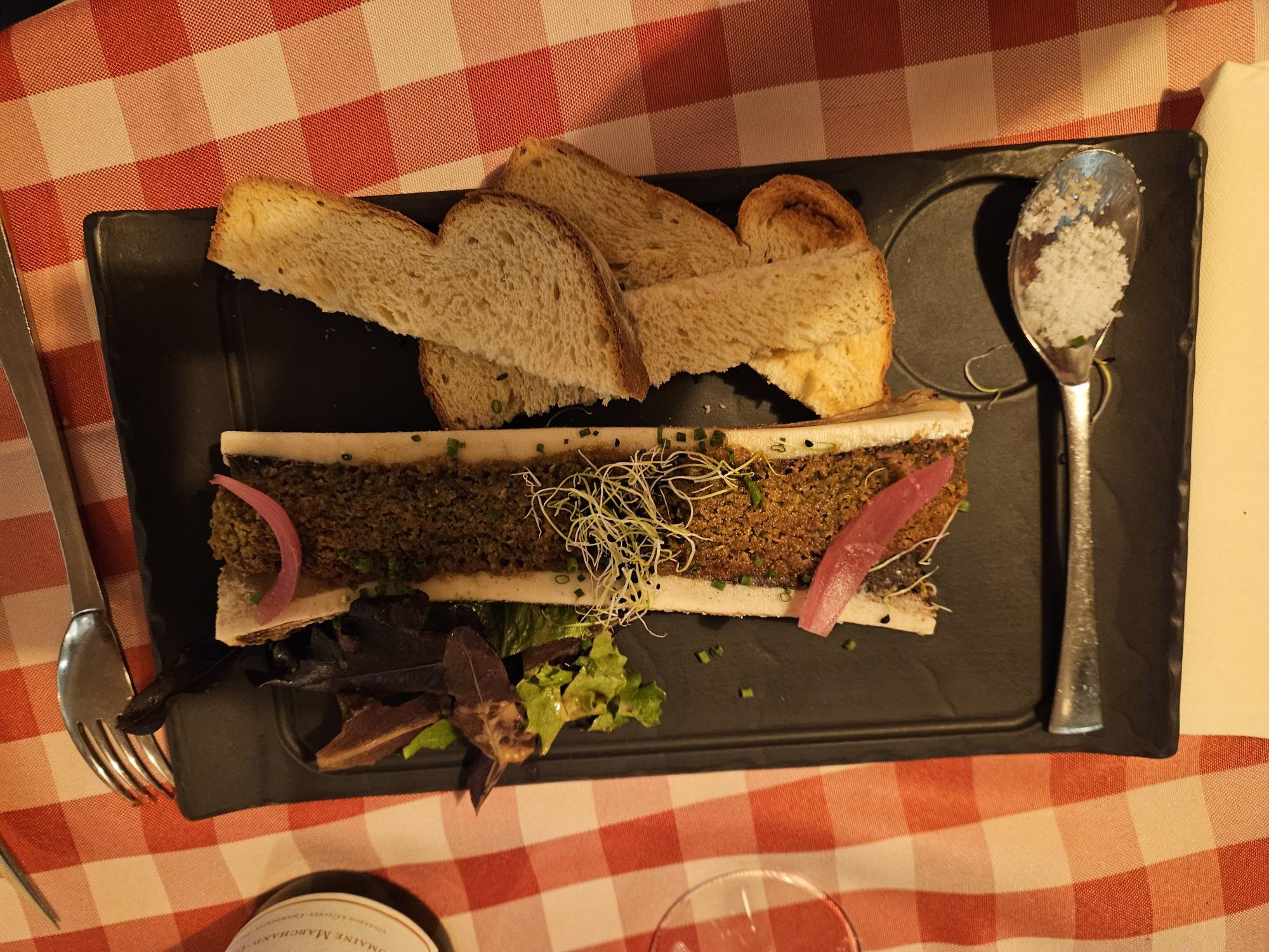 Très bien, bonne cuisine, très bon os à moelle, bon choix de vin, bien servi, un tout petit peu cher mais ça en vaut la peine.