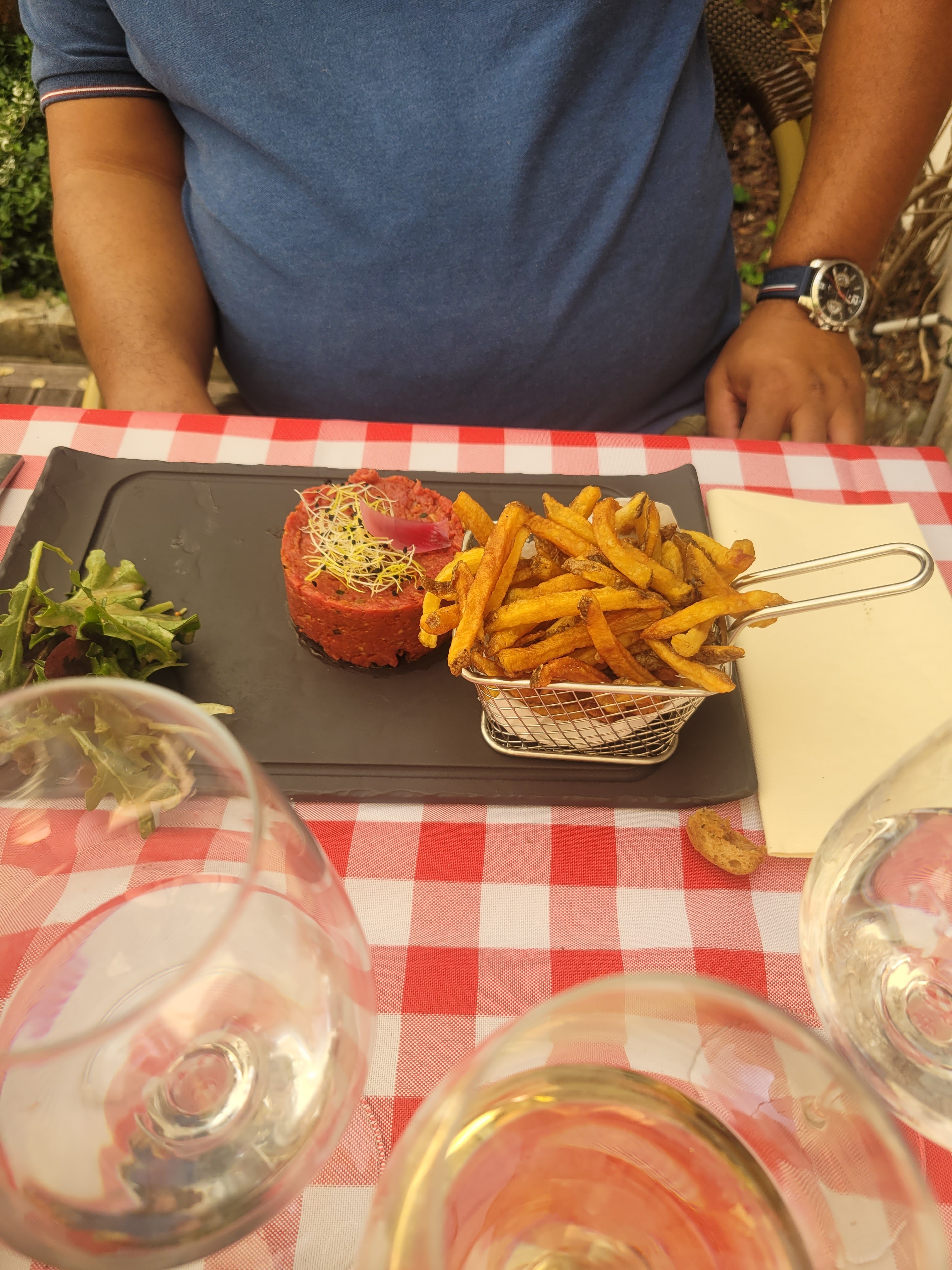 Un déjeuner du midi en terrasse sous le soleil cadre agréable service de qualité bonne cuisine française avec des produits de qualités vous allez y passer un bon moment