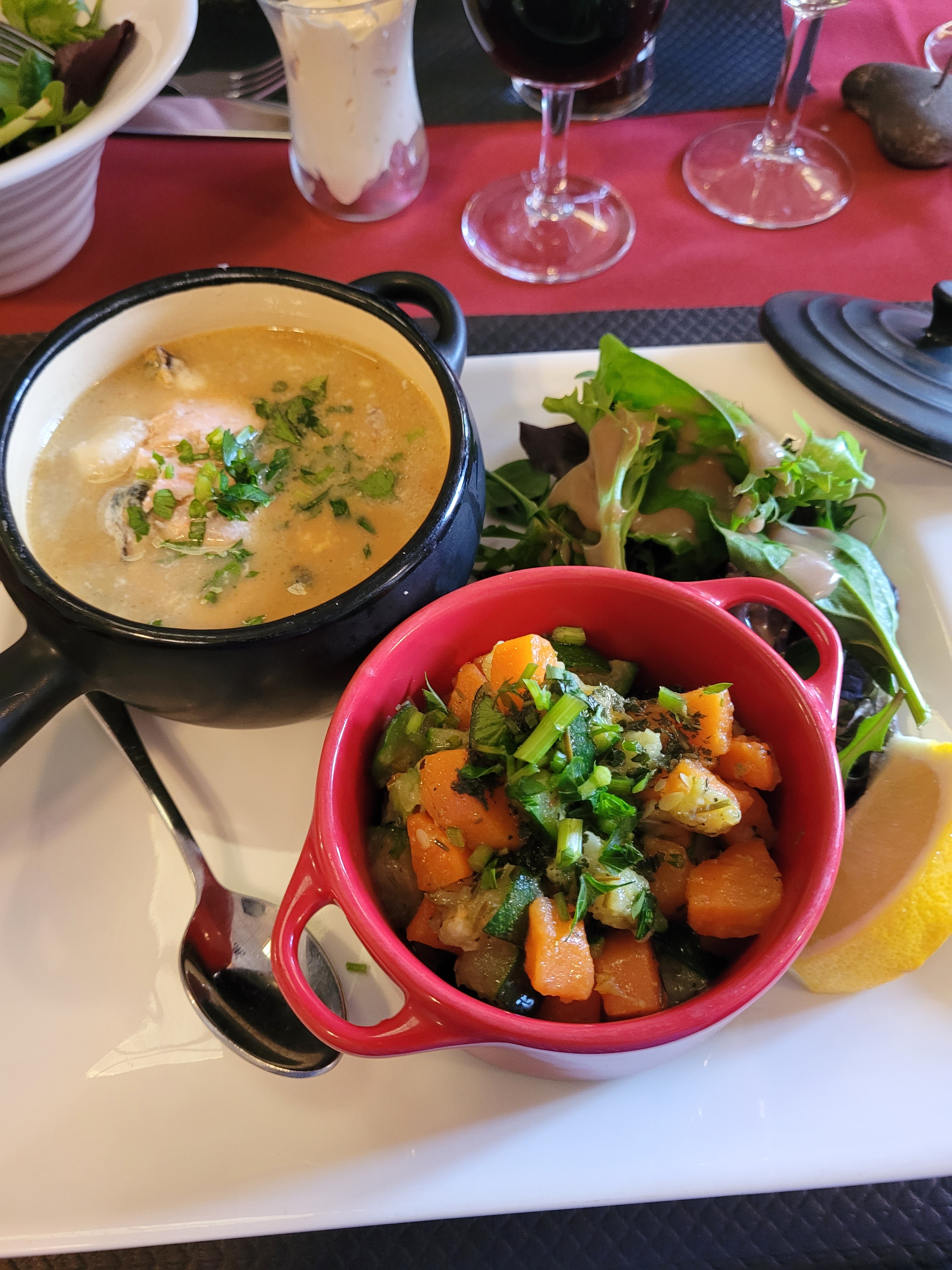 Accueil chaleureux et sympathique des gérants. Le monsieur était très attentif, il a remarqué que je cherchais quelque chose (le poivre) et m'en a gentiment apporté. La cassolette de la mer était délicieuse. Je recommande