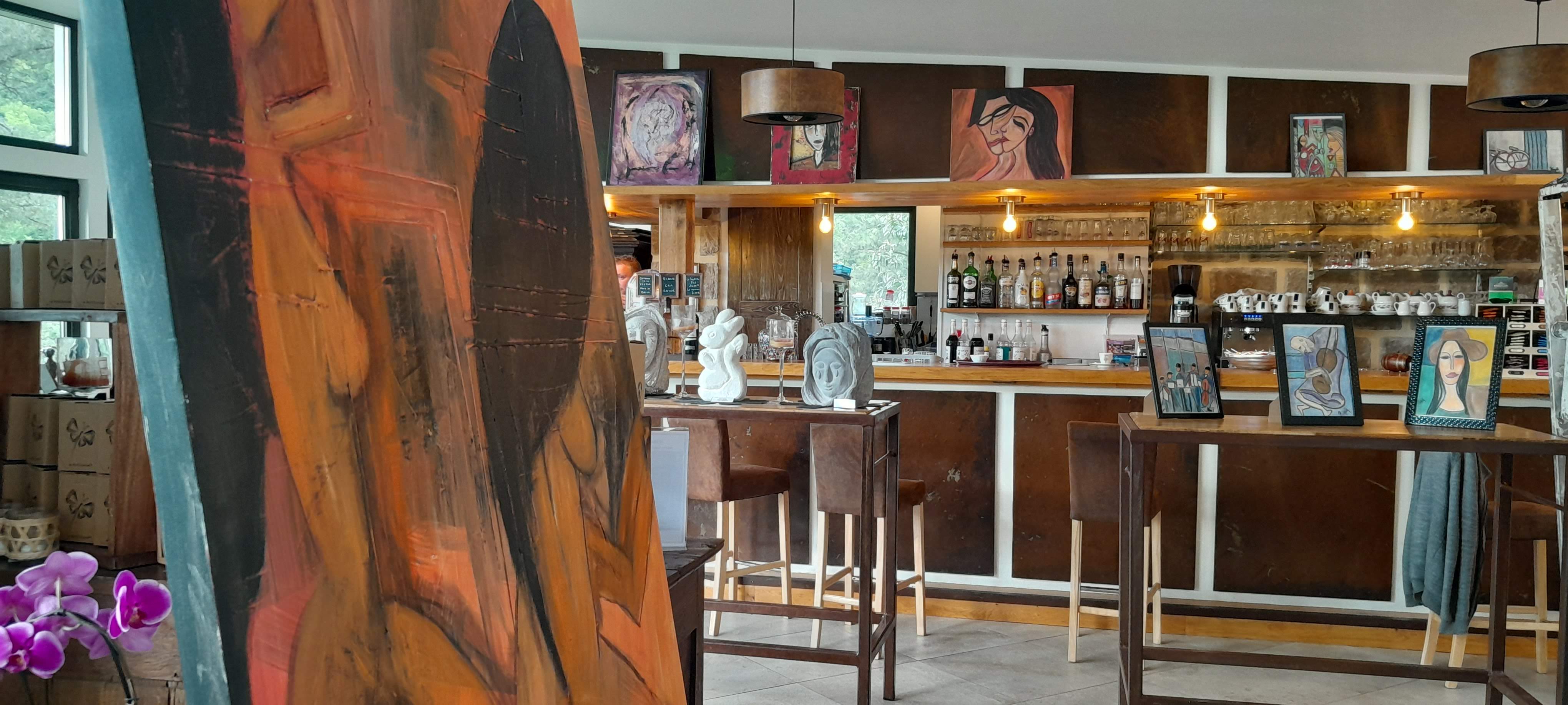 Prendre le temps de s'arrêter, de se détendre, apprécier la vue ainsi que les tableaux et sculptures, boire, manger mais avant tout prendre le temps de discuter et rigoler avec Gilles et Dimitri. Deux personnes formidables, qui savent parler de tout.