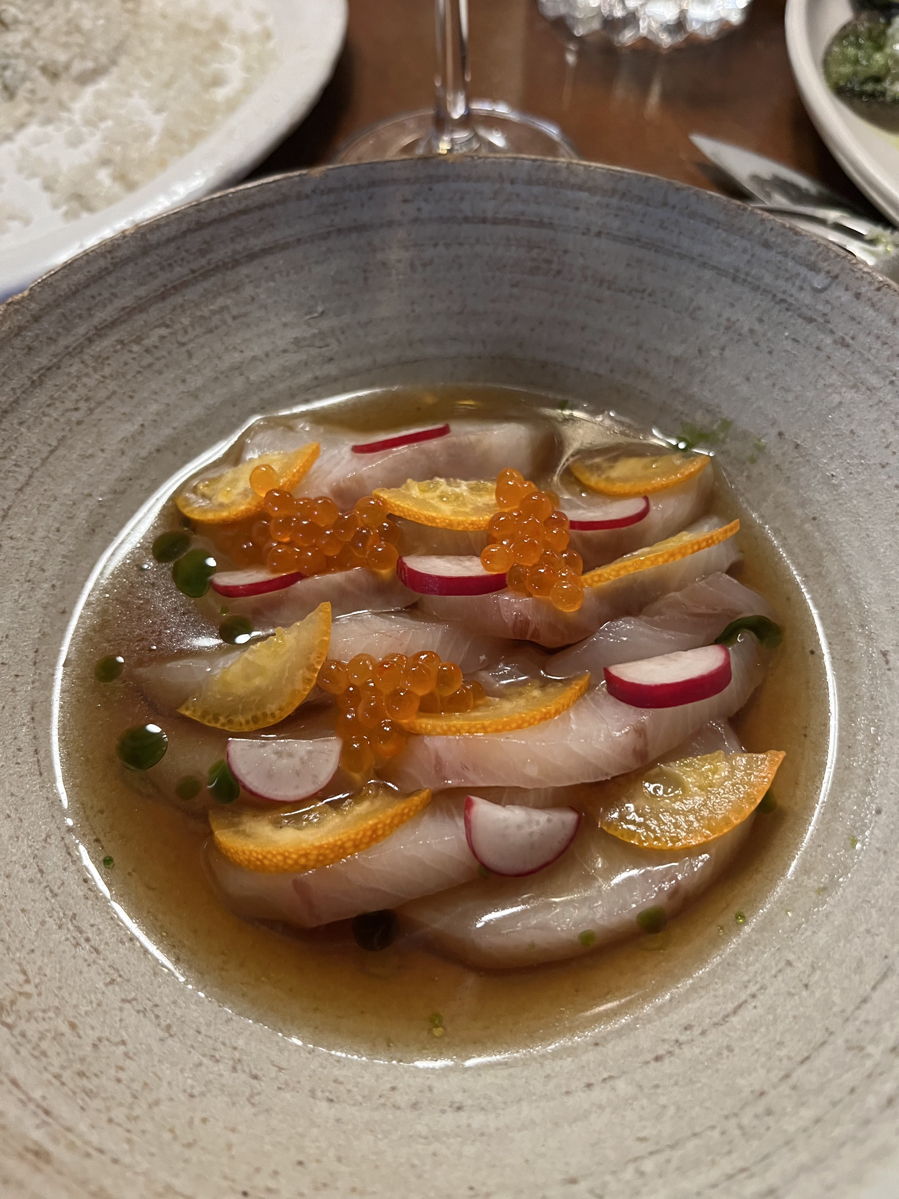 Dans l’ensemble, c’était une excellente expérience, les entrées étaient les meilleures de tout ce que nous avions, en particulier la sériole au ponzu. Petite sélection de vins au verre. Un peu trop cher. Je ne reviendrais pas ici mais je peux quand même le recommander pour une bonne soirée dans un bistro français avec une touche d'originalité