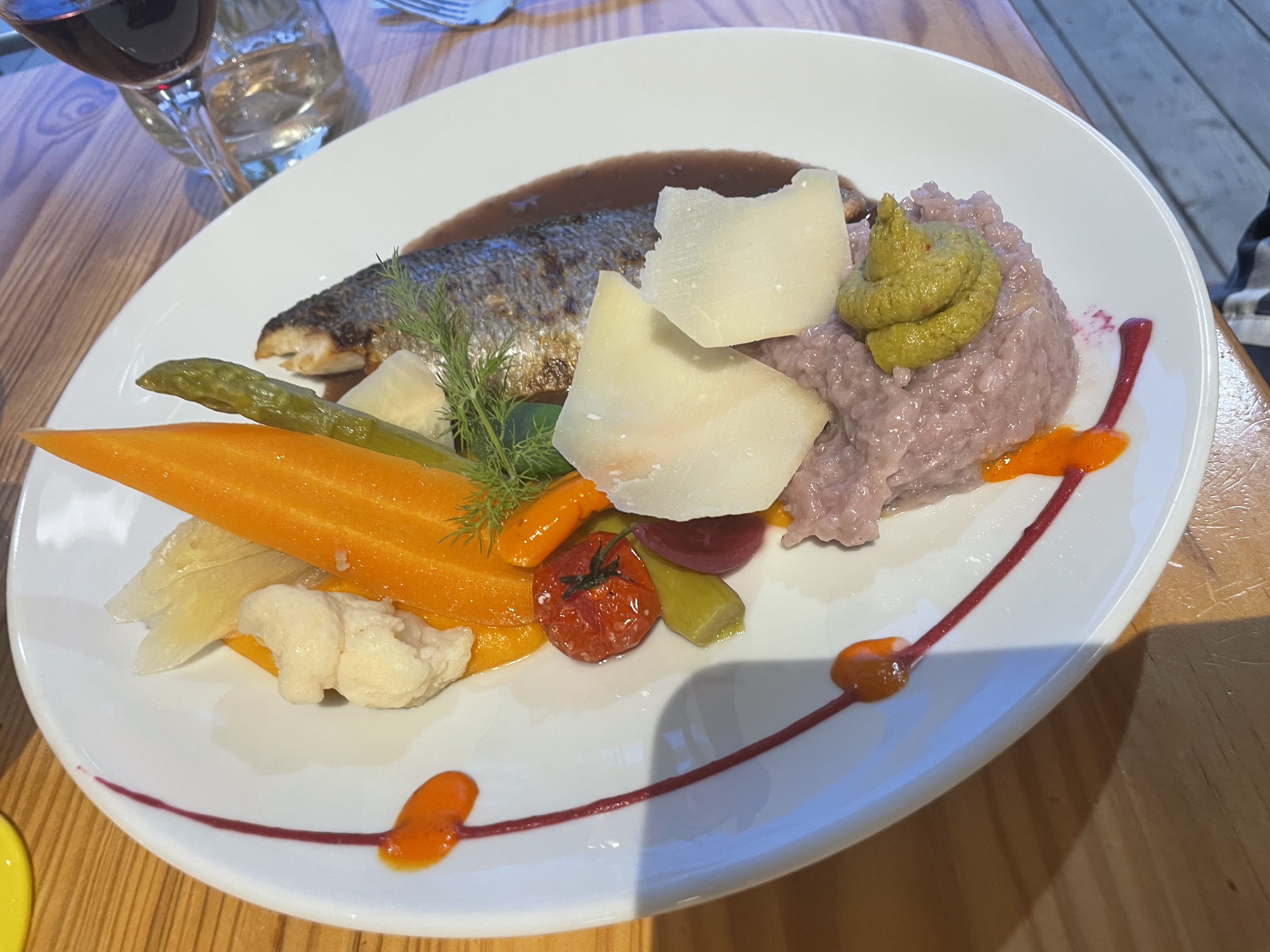Nous sommes allés dans ce restaurant sur les conseils de nos proches. Bien que nous y étions un jour de forte affluence, le service a été rapide, le personnel est agréable et efficace et les plats ont fait l’unanimité. Il y a 3 plats végétariens travaillé, ce qui est très agréable. Les prix peuvent être un peu chers par rapport à d’autres restaurants, mais comme tout est frais et bien travaillé, pour nous cela était mérité. La vue est toujours aussi belle sur le lac, et nous sommes loin de la foule du bord du lac. Attention, bien penser à réserver car l’endroit est prisé.