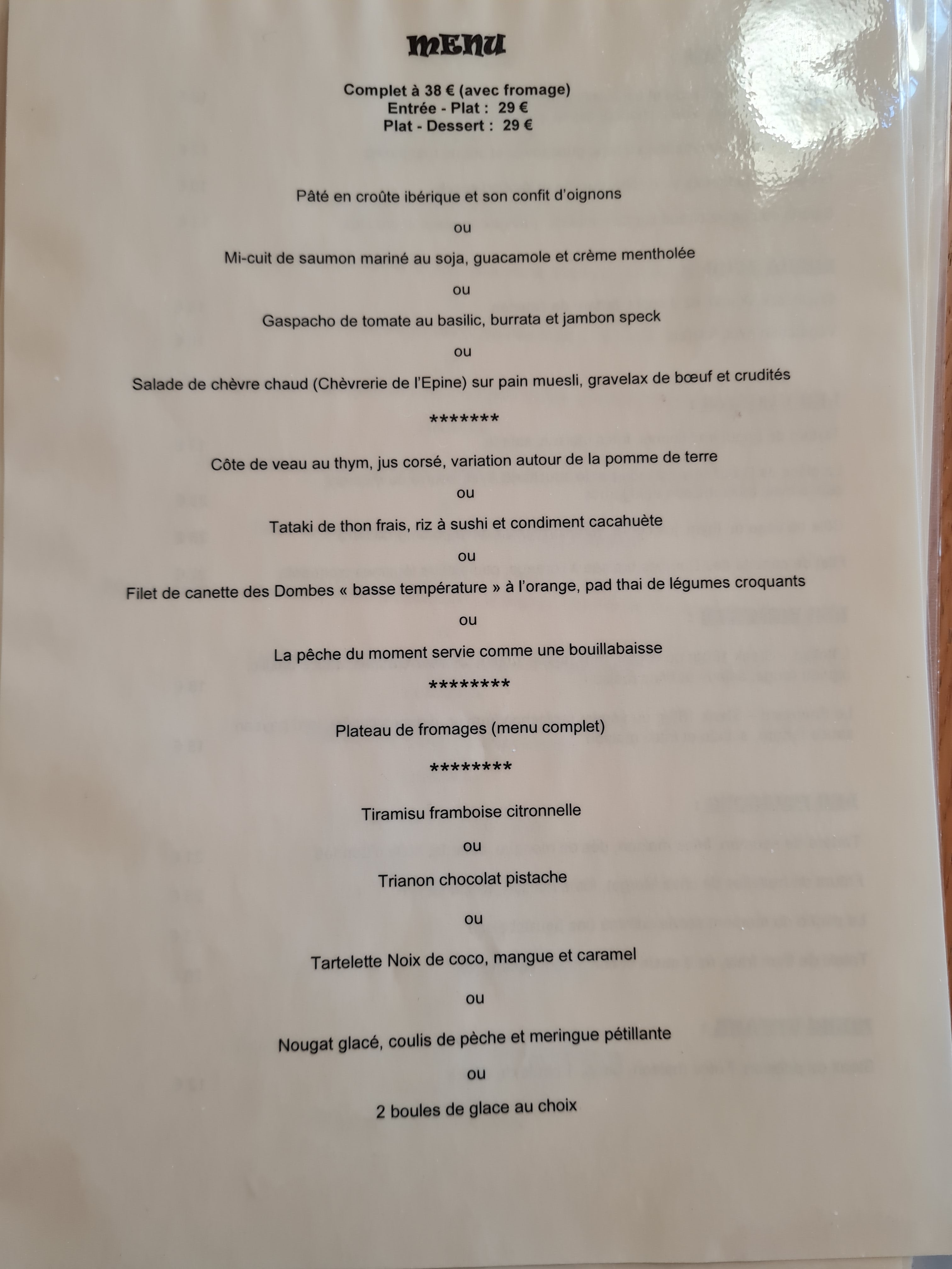 Très bon accueil. Menus à 42€ ou 45€ Personnel en salle très dynamique, et super sympa. Vue magnifique sur AIX LES BAINS. Nous reviendrons avec plaisir.