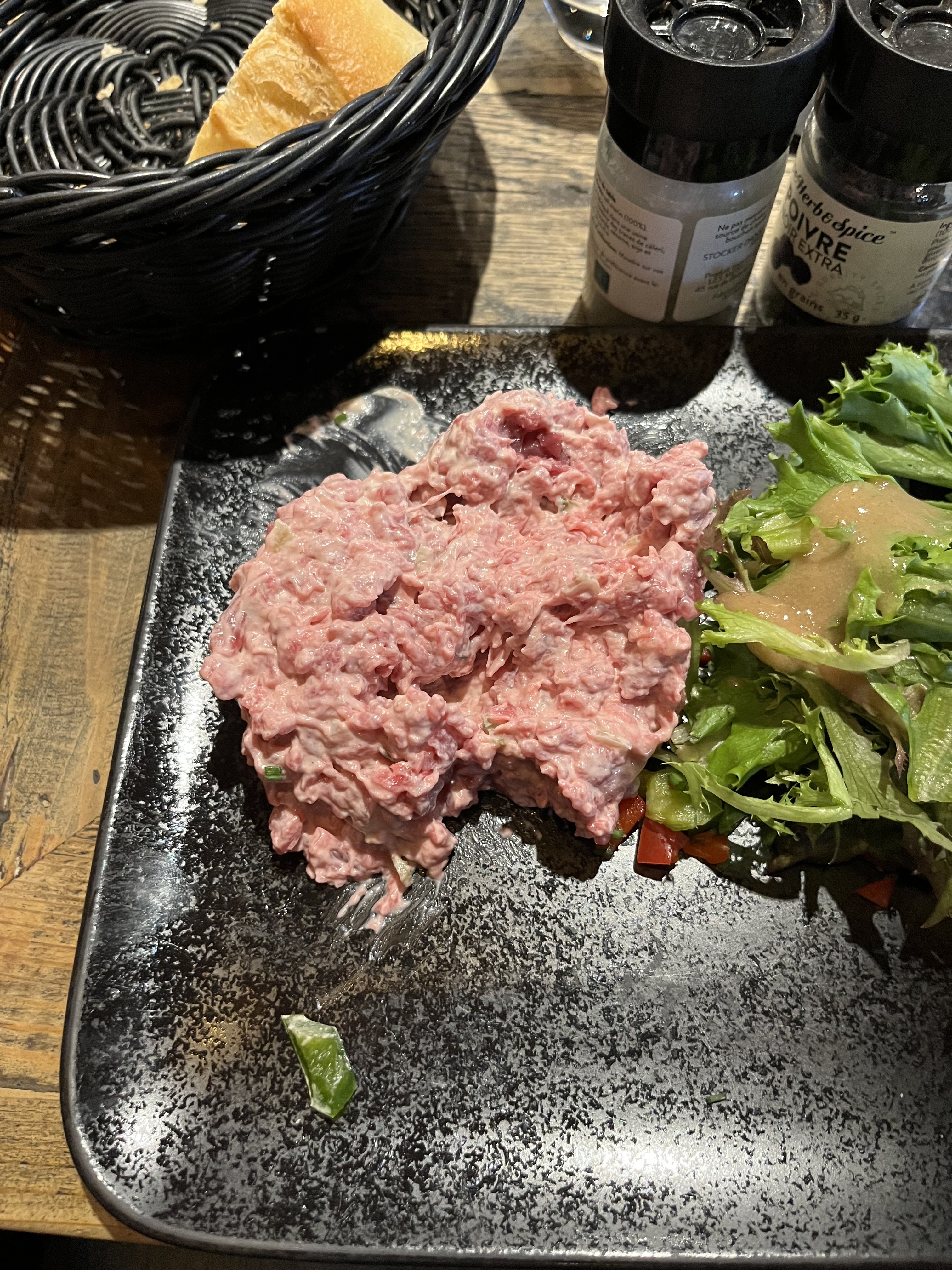 Posté le 06/10/2024 à 14:48"Nous sommes venus dîner à deux(avec réservation) , tout d'abord nous avons dû demander une table plus intime, puisque on nous avait placer à côté de deux homme fort bruyant. Le service était très rapide. Malheureusement, bien que le tataki était excellent, le plat principal était fade et nous n'avons eu ni carafe eau ni pain. Nous avons pris un tataki en entrée qui nous a été facturé au prix d'un plat principal, et la quantité n'était pas énorme, donc soit même avec cela en plat principal je n'aurai pas été rassasié ou alors on m'a facturé une portion d'entrée au prix d'un plat, ensuite sur le poulet de madame il y avait bcp de gras, donc immangeable, et pour moi qui est pris un burger vg, il était censé il y avoir des oignon, de la tomate, une sauce moutarde et miel, au final: J'ai mangé un pain brioche surgelé qui se depiotait avec un pavé chevre (censé être une tranche);au finale mon burger était une tartine de chèvre à 17€, avec une salade immangeable tellement assaisonné, et des frites soit trop salé soit trop fade. Je n'ai pas pour habitude de laisser de la nourriture dans mon assiette et de ne pas prendre de dessert. Je rappelle que le tataki lui était bon, en résumé je ne recommande pas, il ne s'agit que d'un attrape touriste, très déçu. Surtt étant un habitant. Passez votre chemin"