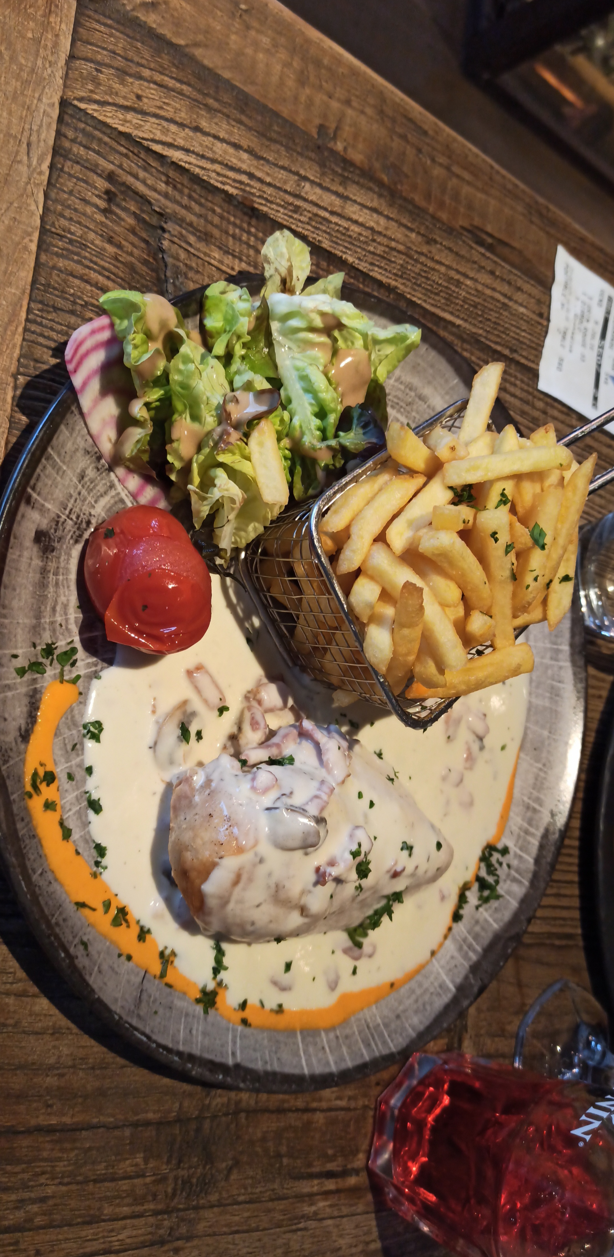 Posté le 09/08/2024 à 17:16"Les serveurs sont polies ,professionnels,avec une petite note d’humour😁 En revanche salade ceasar quelconque, Les moules ,frites pas top . Mousse au chocolat super."