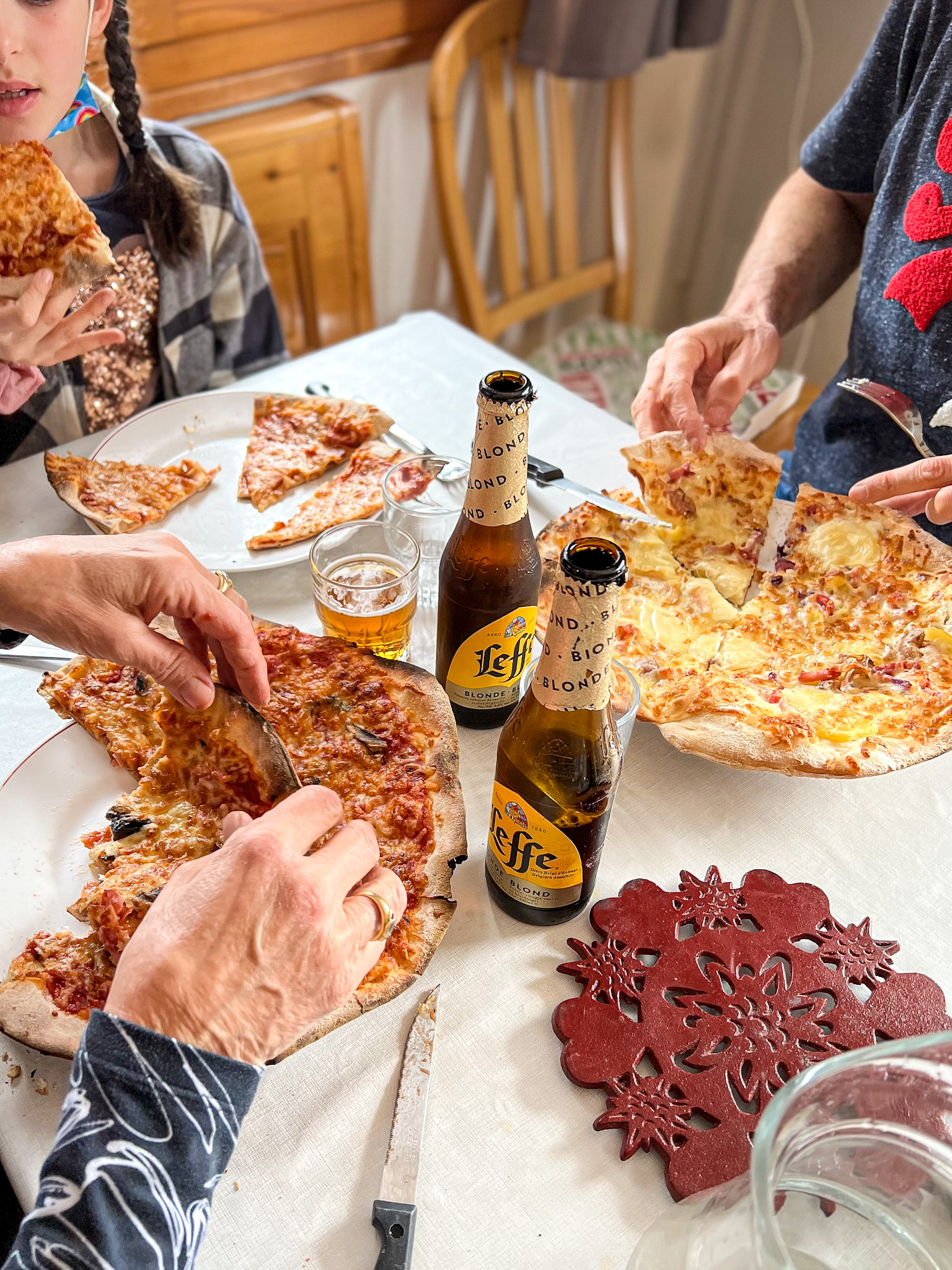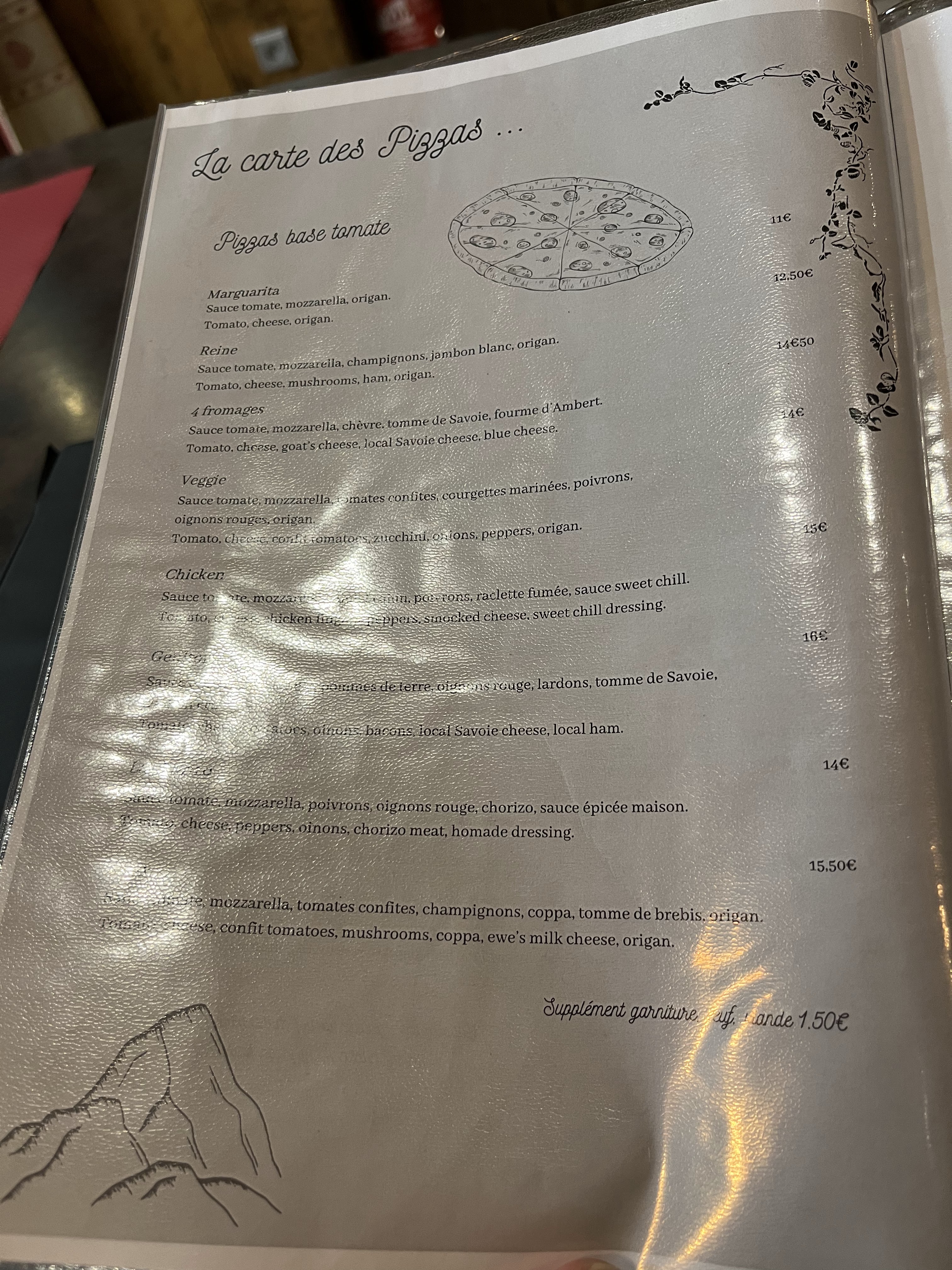 Au pied des montagnes, dégustation d'une bonne pizza. Cuisine rapide et généreuse.