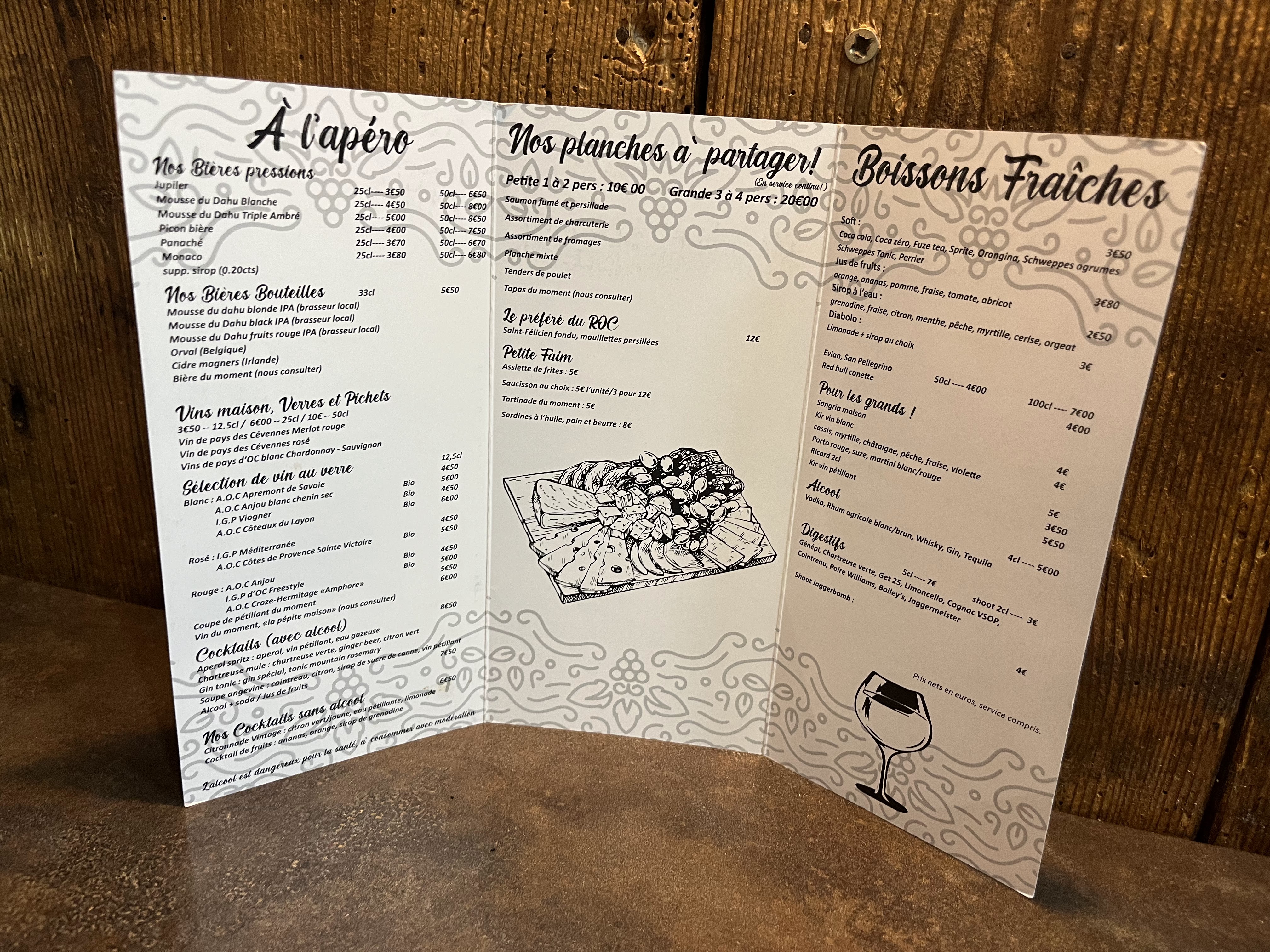 Bonne ambiance chaleureuse, bon prix , bons plats et belle carte des vins !