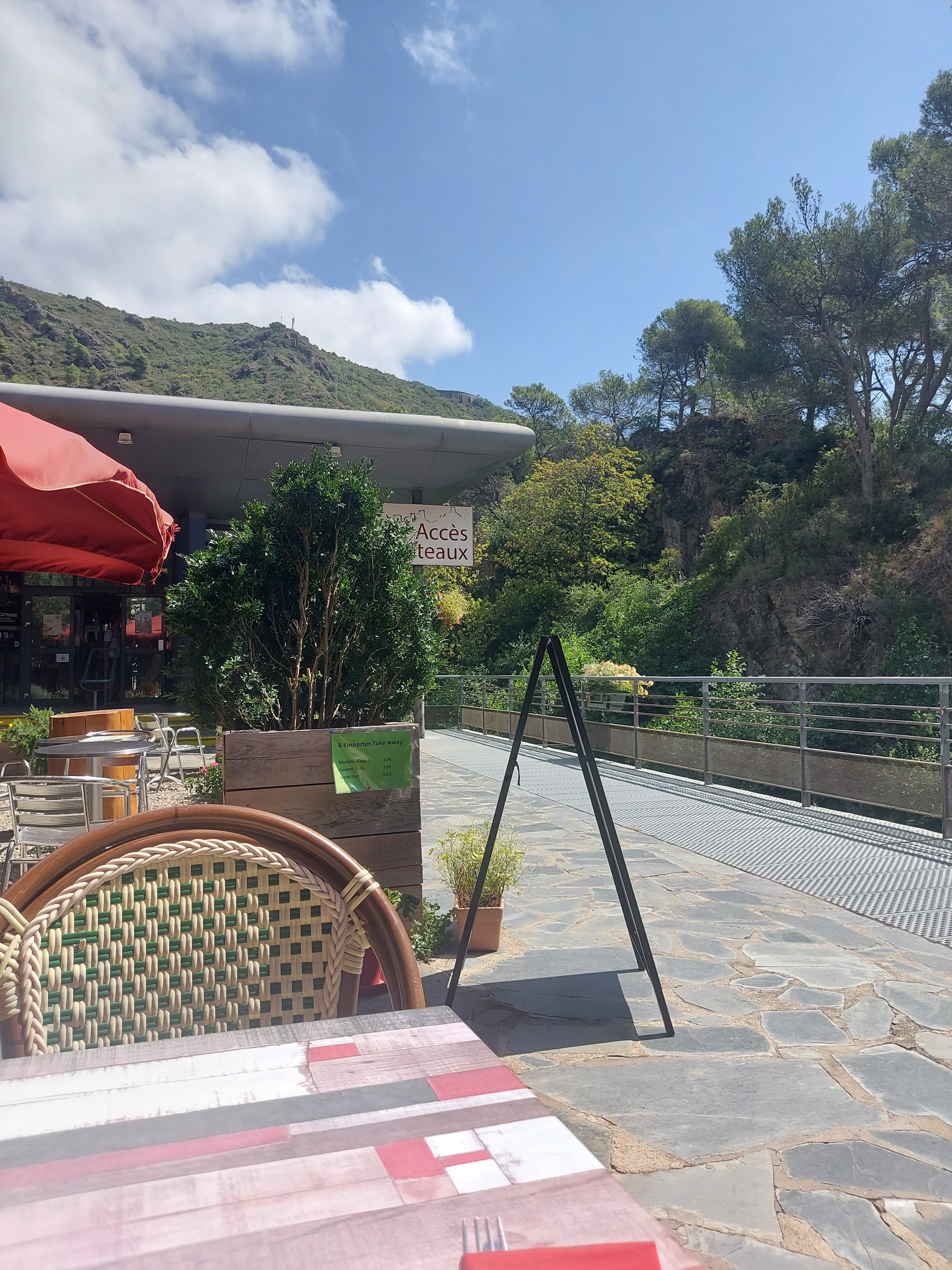 Posté le 28/04/2022 à 16:29"Restaurant directement à la sortie de la visite des 4 châteaux de Lastours, avec une jolie petite terrasse pour se reposer et se restaurer après les 2 heures de visite. Un menu à 22 euros entrée, plat et dessert. Franchement c'était très bon et le serveur Belge très sympathique. Néanmoins deux étoiles en moins du fait qu'initialement il ne devait y avoir qu'une seule serveuse et elle ne parle pas un mot de français....et nous pas un mot d'anglais alors oui il y a les téléphones et les applications de traduction mais bon...heureusement que ce jour là le serveur du restaurant étoilé était venu lui donner un coup de main! En plus, nous nous sommes sentis gênés pour nos voisins de table, qui attendaient très patiemment leurs plats depuis 20 minutes quand les notres sont arrivés alors que nous venions juste de finir notre entrée. La deuxième étoile en moins est justifiée par le fait que dans l'entrée: assiette de charcuterie, un petit anchois s'est glissé, qu'il n'était nullement indiqué et que mon mari est allergique aux poissons....heureusement qu'il l'a vu avant !"