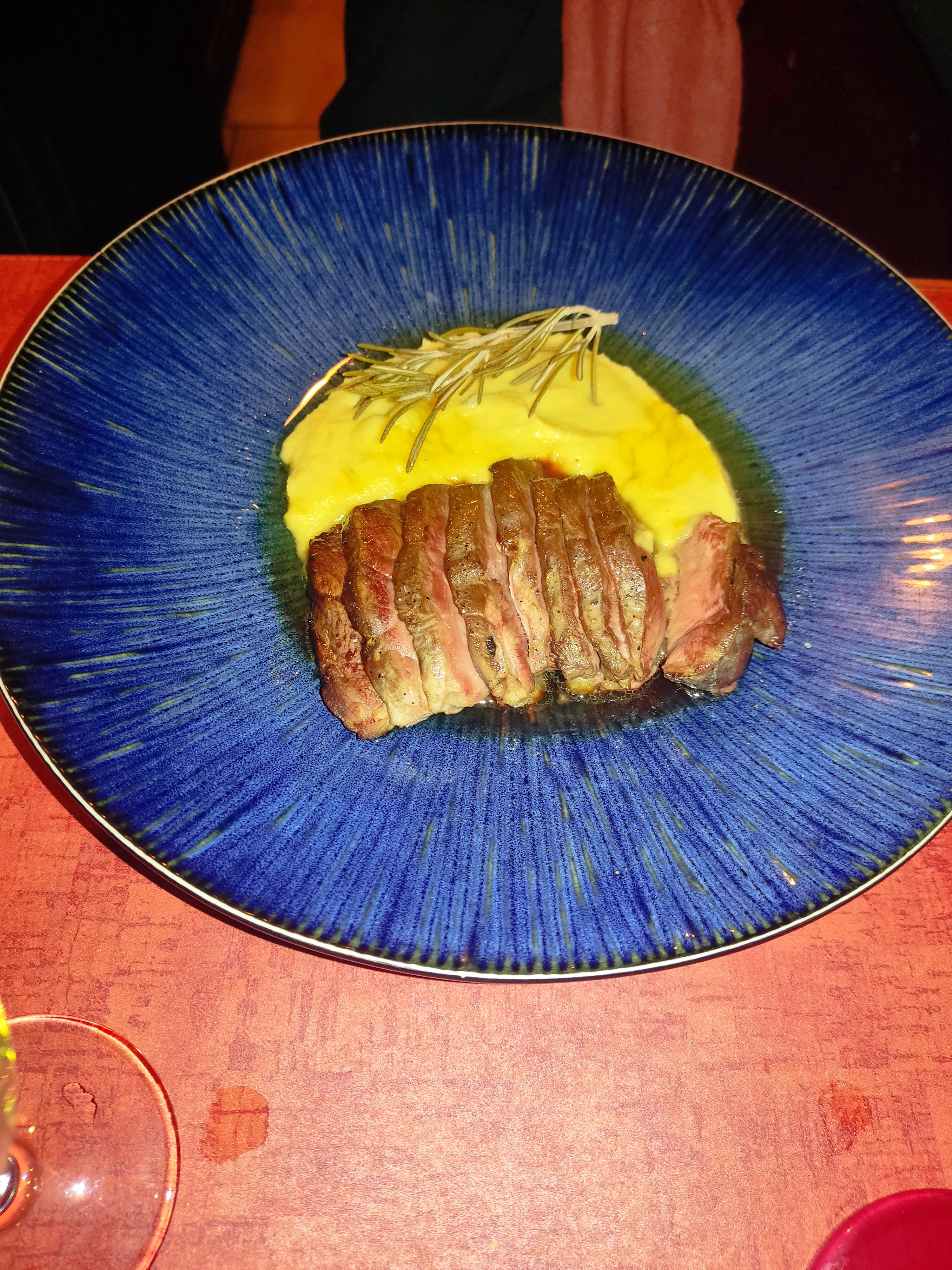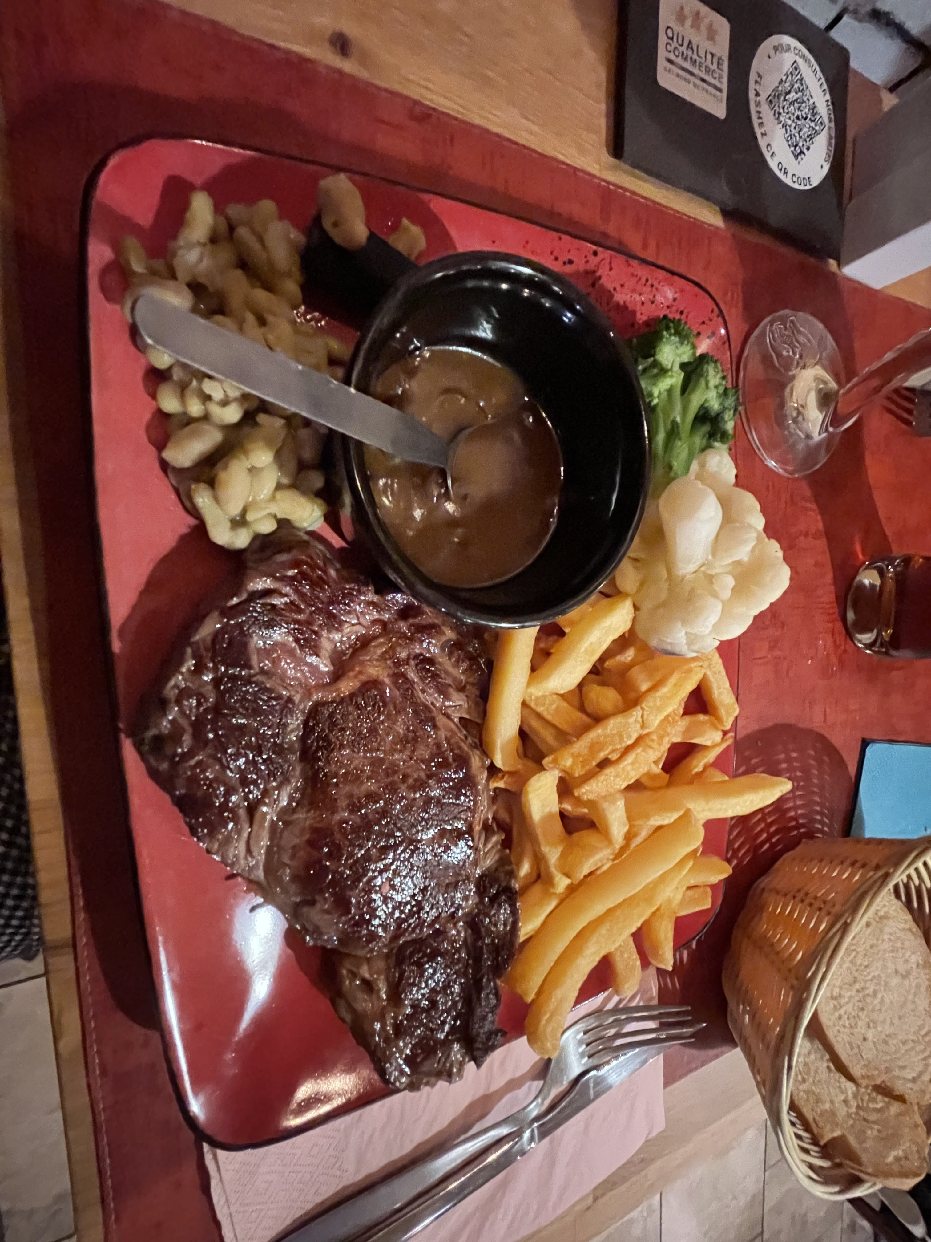 C'est au détour d'une recherche Google que j'ai trouvé ce restaurant, une magnifique découverte, un havre de paix retiré, un service chaleureux et qualitatif. Toujours sur le ton de l'humour. Merci ! Des endroits qui ont une âme comme il en existe de moins en moins. La viande était très tendre, les légumes sans parler des frites faites maisons 🏡 ! Les vins parfumés ont été une très belle découverte ! Merci grandement !