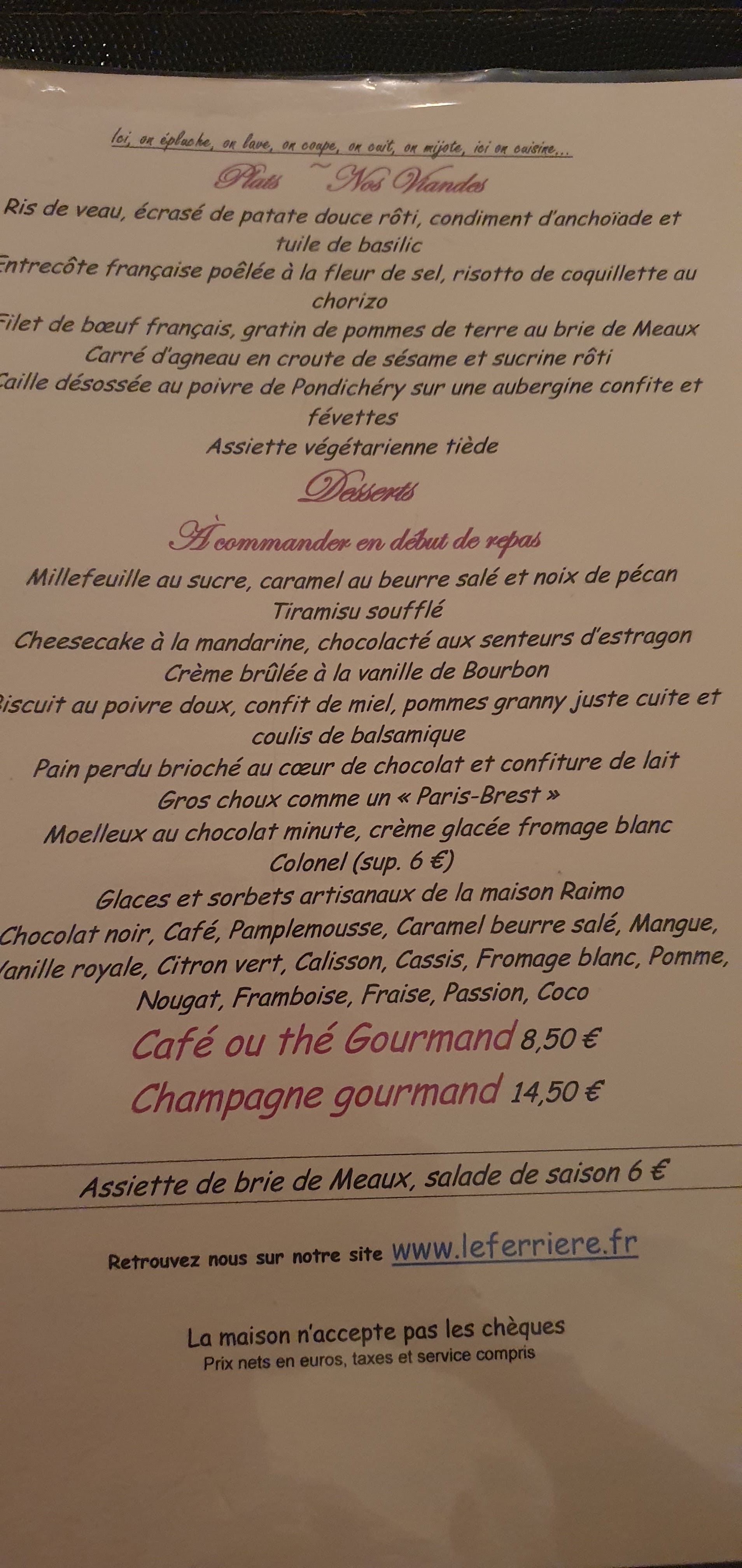 Le ferrière, excellent restaurant, des plats tjr très bons ,préparés avec soins,des alliances savoureuses et uniques, tjr bcp de plaisir à y retourner, accueil souriant et sympathique ....